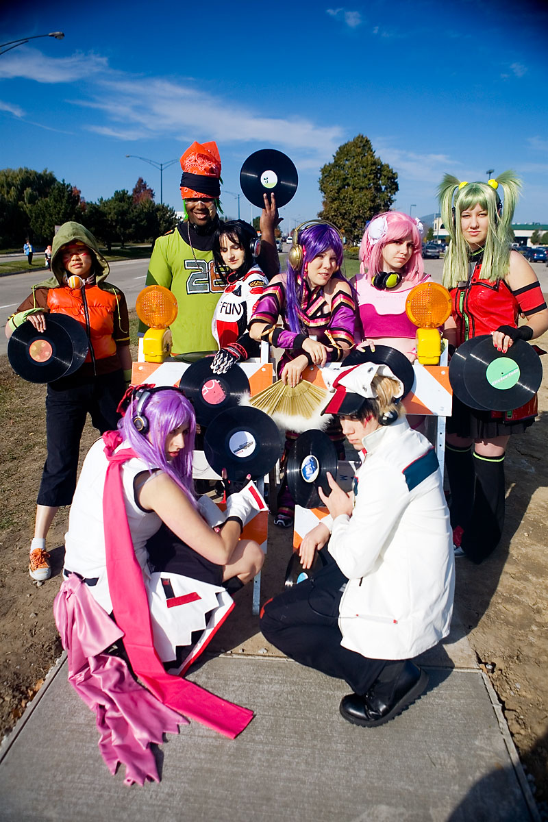 Youmacon 2007 cosplay photoshootBeatmania Group PhotoshootSource: BeatmaniaBack to Gallery Index | Back to EventsLots of costumes, a sunny day, and endless photo ops available, making this the single biggest shoot of the con for me. Along with the individual photos I took about 4 GB of card space on this shoot alone. A little sunny, but it gave me a lot to work with, and I think there's a nice selection of group photos below. So thanks to everyone listed below - you guys were great sports running around in PVC, enduring the glares of security at the abandoned factory next door, and enduring the glare of the sun and the flashes. Y'all were great, and enjoy the photos... DJ (cosplayer)
