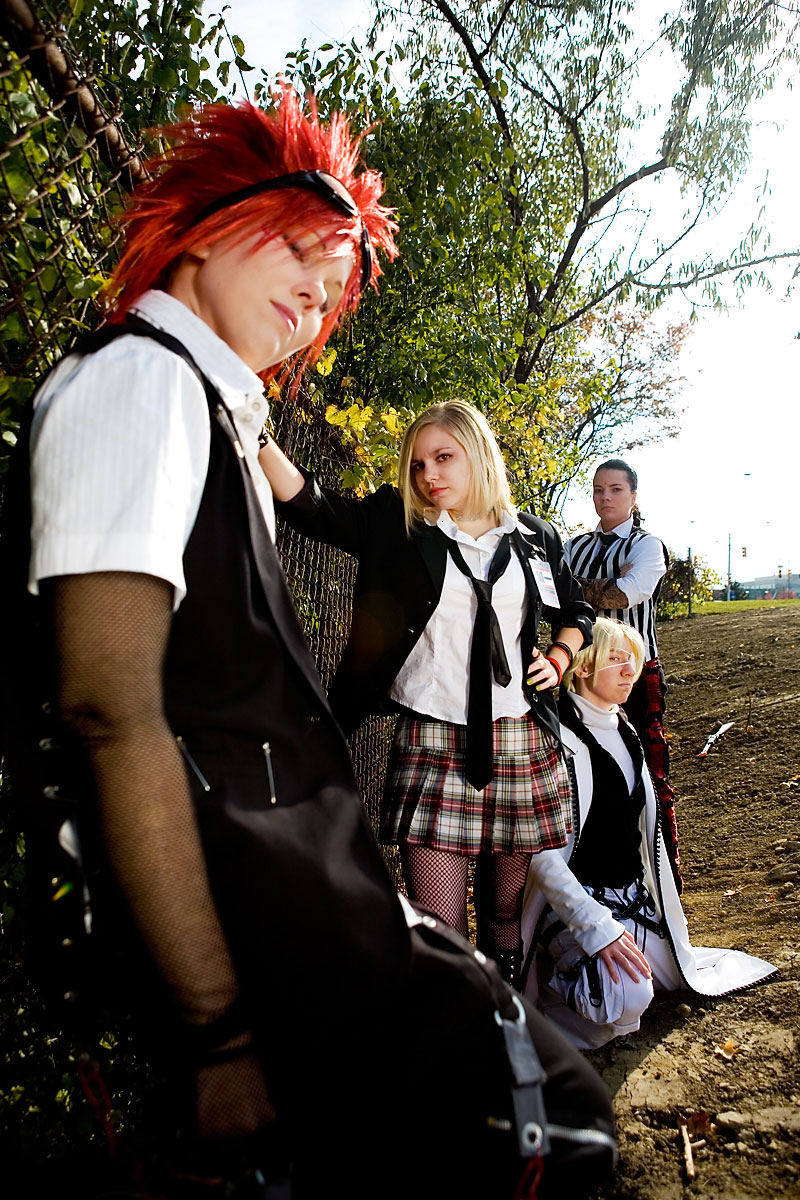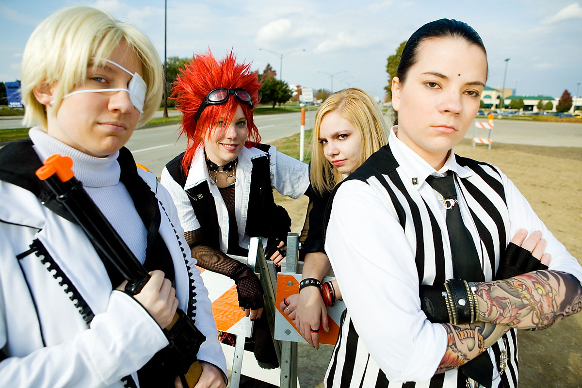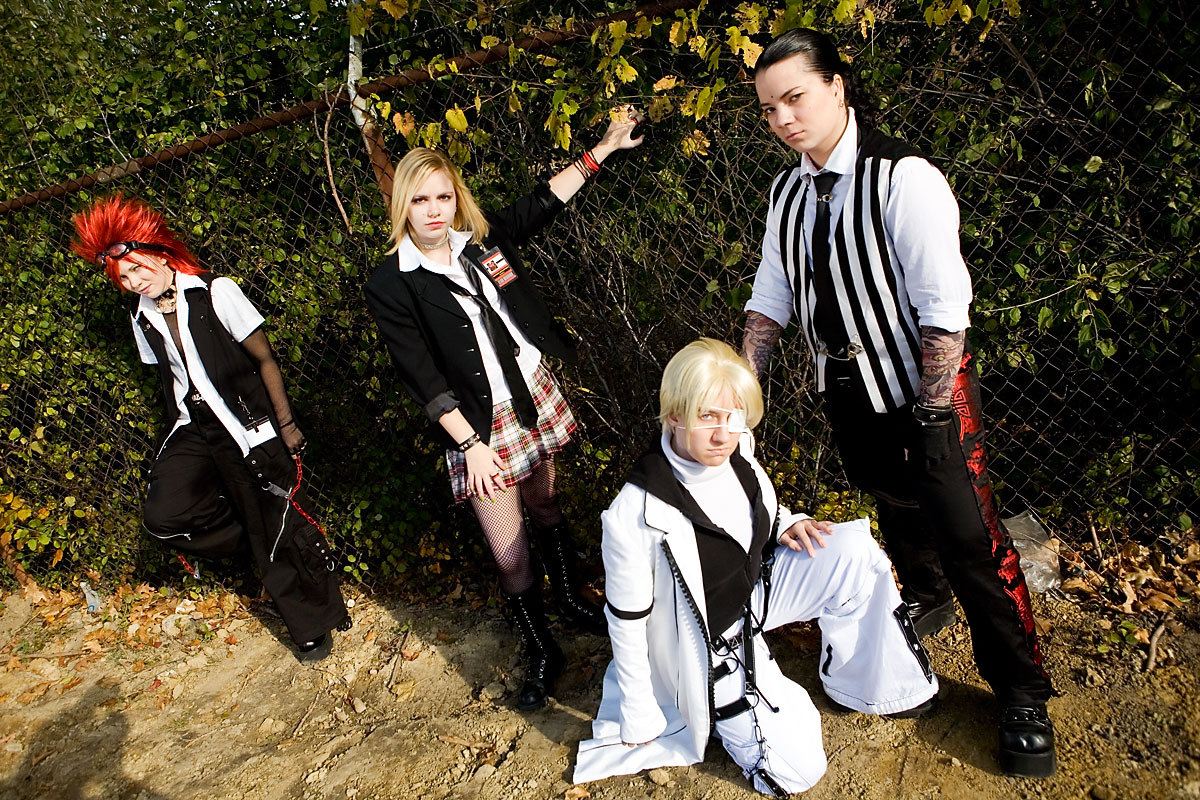 Youmacon 2007 cosplay photoshootTwilight Town TurksSource: Final Fantasy VII meets Kingdom Hearts 2Back to Gallery Index | Back to EventsThe last shoot of the convention, I worked with Elemental and company to get some group shots of the four peoples' take the Turks, Twilight Town style. Lots of badass posing and glares ensued, with plenty of highlights to be shared below. This was one of the more succesful outdoor shoots this weekend, I think - good use of the reflector and some fortunate shade meant we had some night lighting to work with for much of the shoot. That and some nice colours blended with some cool outfits, and you have a good shoot. Thanks to all four of you for the extended shoot, and enjoy the photos. |