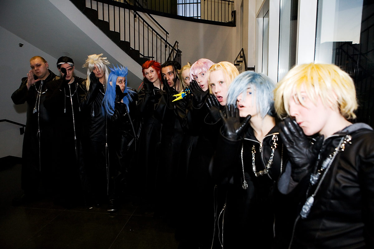 Anime Boston cosplay photoshootOrganization XIII group photosSource: Kingdom Hearts 2Back to Gallery Index | Back to EventsAh, generic-yet-reasonably-well-lit stairwell, old friend at Anime Boston. A little cramped for such a large group, but we got some shots in with the light we had. Somewhere out there, there's a list of all these people, but I don't have it, so for now, I'll just thank them all for taking part. Enjoy the photos. |