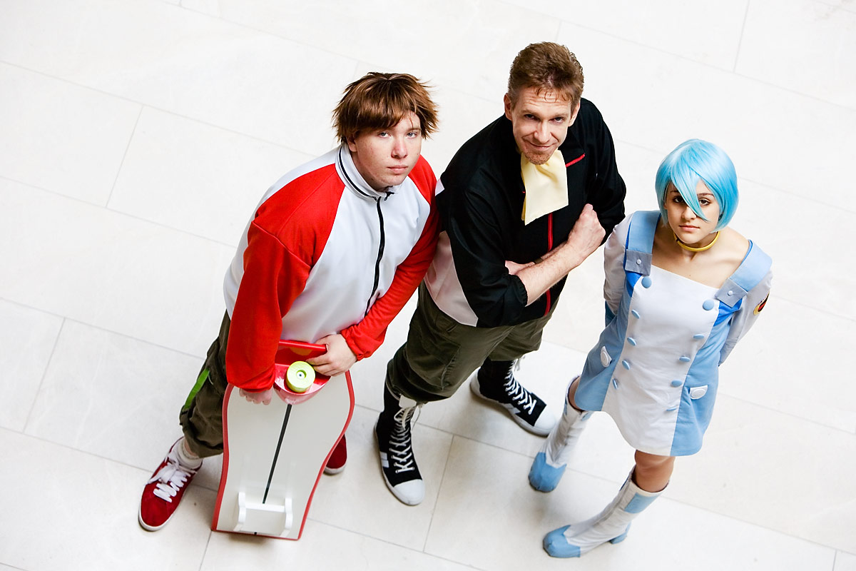 Anime Central cosplay photoshootCharcoalEyes and two others to be named soonAs Eureka, Renton and HollandSource: Eureka SevenBack to Gallery Index | Back to EventsOkay, this is a rather brief shoot, mostly taken by me shadowing Shiroin (another con photographer, and a very good one I might add) and shooting this from about one story up with a very long lens. And for once, a convention centre had decent flooring, so we had a gorgeous clean marble background to go along. With the low light and long lens, the depth-of-field is a bit narrow, but I think the results work really well, and they made for some really nice shots. I only snagged a few (since other photographers seemed to have this bunch well-covered) but here's some highlights of my quick set. Thanks to all three for letting me tag along with this shoot, and enjoy the photos. |