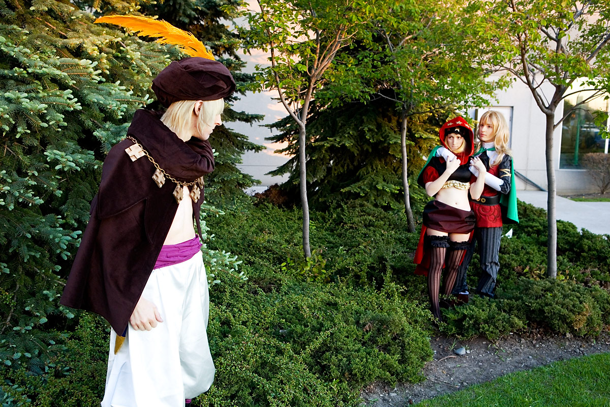 Anime North 2008 cosplay photoshootOdin Sphere - Group photosSource: Odin SphereBack to Gallery Index | Back to EventsSo the masquerade was over, and this bunch had just gotten off the stage. I was supposed to do a shoot before, but schedules didn't line up, But since for the first time in known history the AN masq ended with daylight still visible, we managed to get about 30 minutes of "golden hour" sunlight with the group. The backdrop was a little spartan, since we didn't have time to go anywhere and AN is mostly devoid of trees. But, we made do with what we had and got a bunch of group pics and individual pics. Here you'll find the group shots taken with the setting sun. Thanks to everyone for taking part after what was a crazy tiring day for us all and enjoy the pics. |