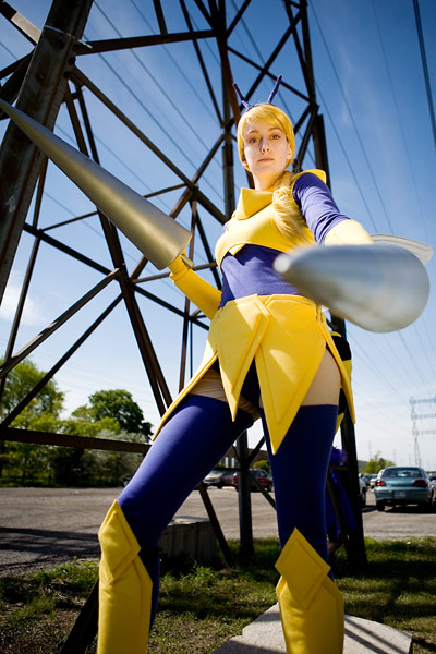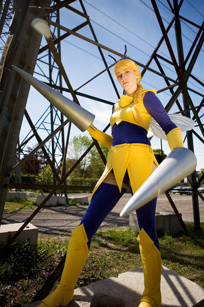 Anime North 2008 cosplay photoshootMy Pokemans 1: Bluerose as Beedrill (Gijinka)Source: PokemonBack to Gallery Index | Back to EventsThe first of three individual sets of photos, we took this in the industrial wasteland next to the TCC with the liberal use of mister blindy (a gold reflector) to keep the really hard shadows from overpowering. I was really happy with this set - Bluerose had done a phenomenal job with her costume and I was really happy to get a goot set with it, because it was too insanely good to not get some nice phtos with it. Thanks again to Bluerose for providing the awesome outfit, not to mention being blinded by the reflector, and enjoy the photos. |
