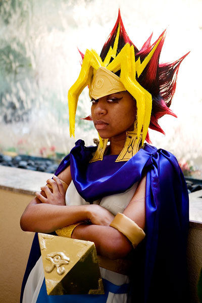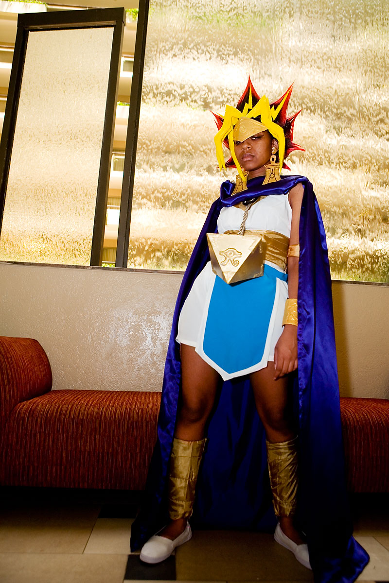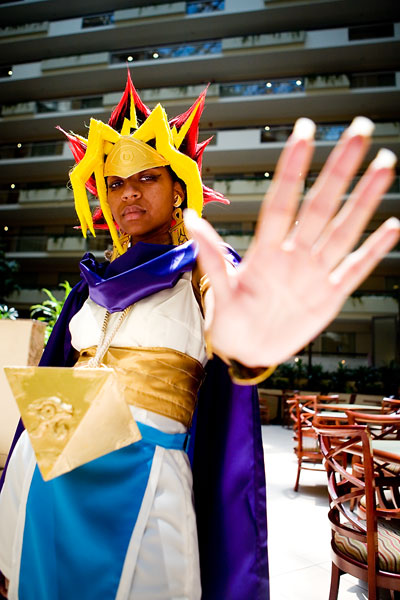 Atem has awesome hair, a flowy cape and some serious hardware around the neck. Another shoot from inside the hotel until we were booted, plus a pic outside for good measure, we managed to get some nice shots in the restaurant area and near the fountain. ChezanoRakuen was game to be blinded by the reflector, and that, plus her supernatural ability to project scorn from her character, made for a fun shoot. Thanks again, and enjoy the shoot. |
