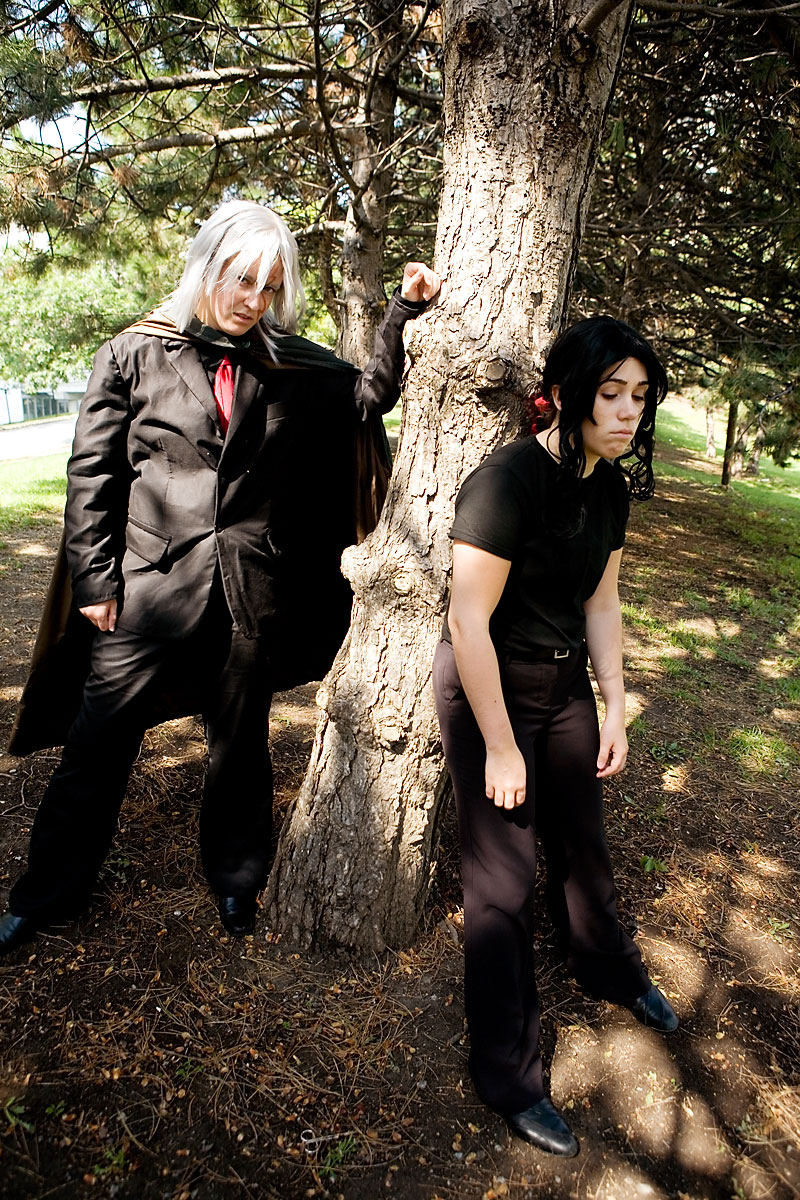 Okay, ignore the whole "daylight" part of the Vampire equation. Hell, Blade it and maintained their credib... er, never mind... Anyway, it wasn't really the idea time of day, but we did the shoot, with plenty of snarling and angsting for all. Zam and Jackie were their usual game selves, with bonus points to Zam for boiling in that outfit. Thanks for taking part, we'll do a more appropriately set shoot another time, and enjoy the photos. |