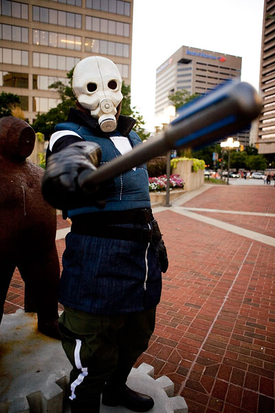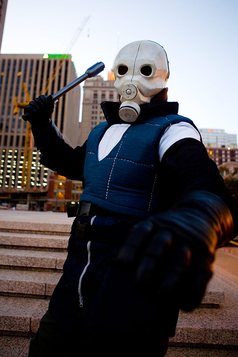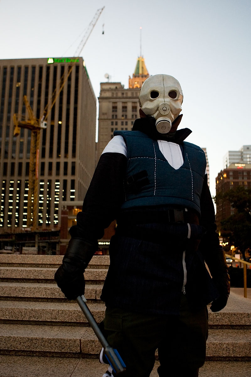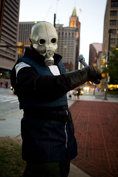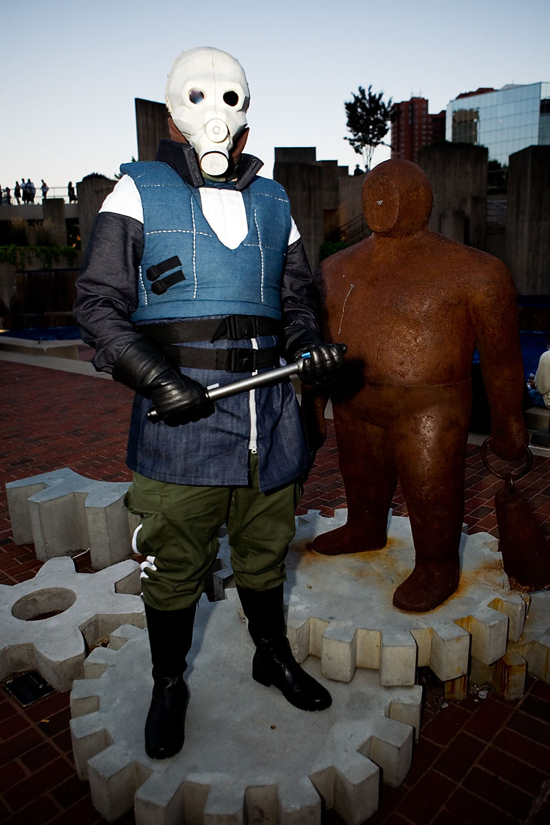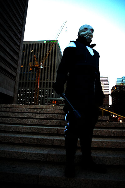 We didn't have much light for this one, but it kinda fit the grim mood anyway. Besides, what better a place to photograph a costume based on a repressive regieme than the streets of Washington DC? Okay, inappropriate pseudo-topical bad joke over... ...fairly simple shoot, available light, with the main challenge trying to keep the happy touists out of the background of what is supposed to be a hell-hole, with moderate success. Anyway, thanks to djkaneda for not beating me to death over the photo delay and enjoy the pics. |