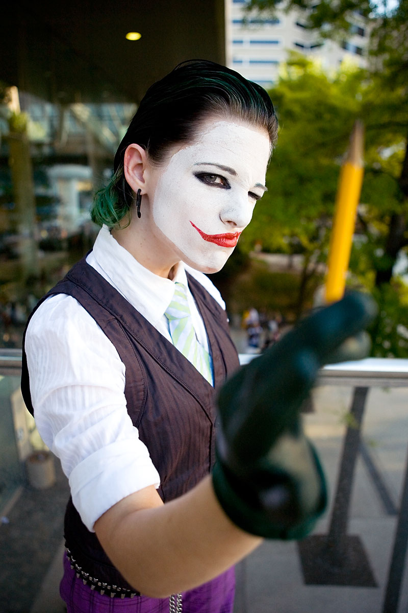 No, not the version from The Dark Knight, but very cool nonetheless. Bunny had her villan full on here, and we snagged a quick set of photos before they and the light vanished. Thanks to Bunny for taking part and providing us with a change of pace from all the Dark Knight jokers running around, and enjoy the photos. |