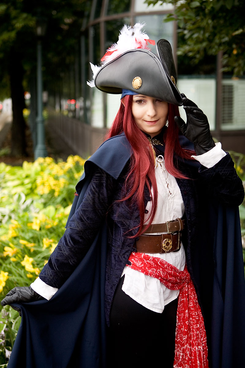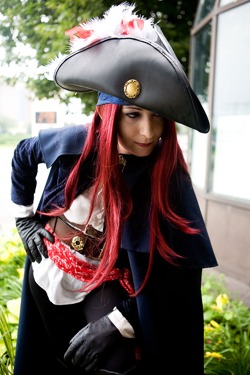 Novaraven was in fine costuming form, spotting a nice pirate look. Not sure if there's an origin on this one other than "hey, it's a pirate and thus it rocks", but it worked for a quick shoot. Just replace the road in the background with the high seas... Thanks to Novaraven for braving the dangerous oceanside, and enjoy the photos. |