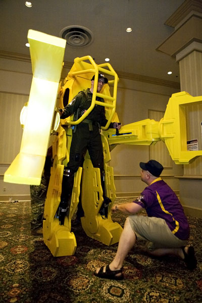 Okay, in the circle of costuming, there's "going way over the line", there's mad, there's barking mad... And then there's making a scale-sized Powerlifter from Aliens because you can. And moving in it. Albeit not much, but still, this is pretty badass. This wasn't really a photoshoot, so there's not much in terms of lighting and composition or theme, but hey, it's cool to see this being put together, and the sheer "Holy Crap" by the finished product. Thanks to Martin for being just that hardcore, and enjoy the pics. |