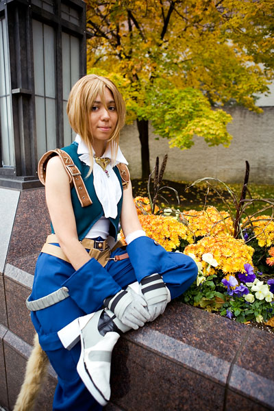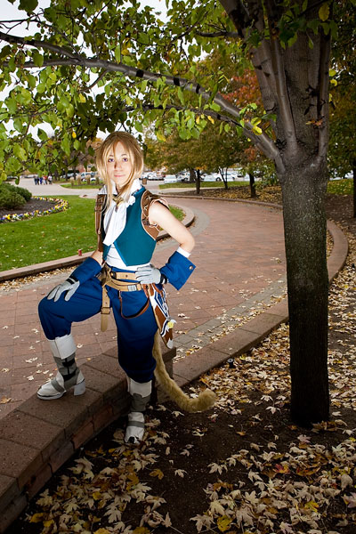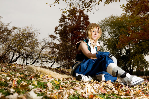 Another sunday shoot before the weather went south, you can see the grey skies in this one as the rain and snow approached. The soft lighting made for nice photos, most still taken with flash, but giving a nice color scheme that complimented Scoti's costume. I have no idea what Zidane is supposed to be in the game - I presume that's a tail, and I'm guessing there's no headbutting involved unlike the soccer Zidane, but otherwise, we managed to mostly hide the cars in the background and get some pretty cool shots outdoors. Thanks to Scoti for braving the rain as it cut things short, and enjoy the photos. |