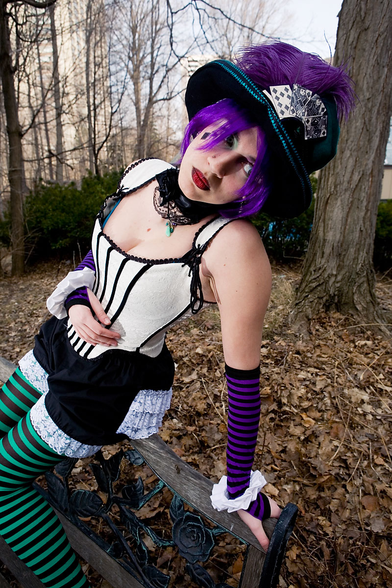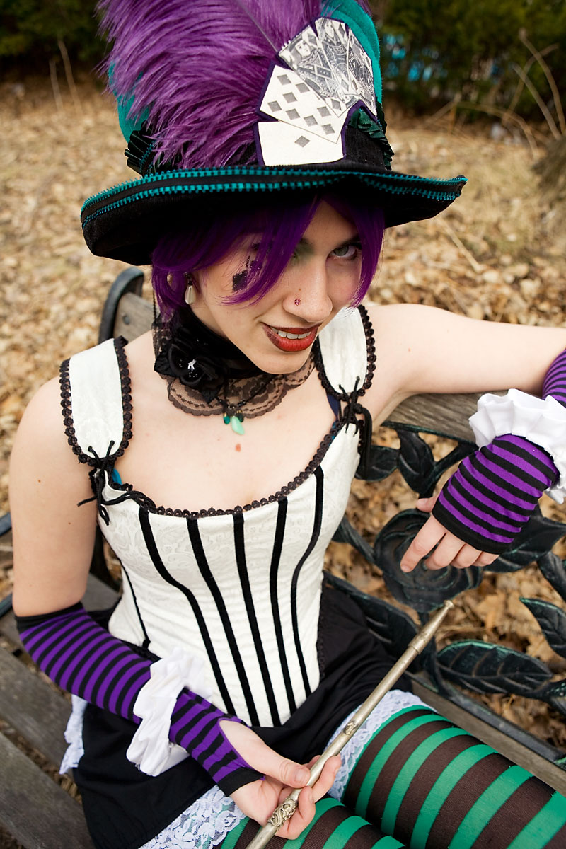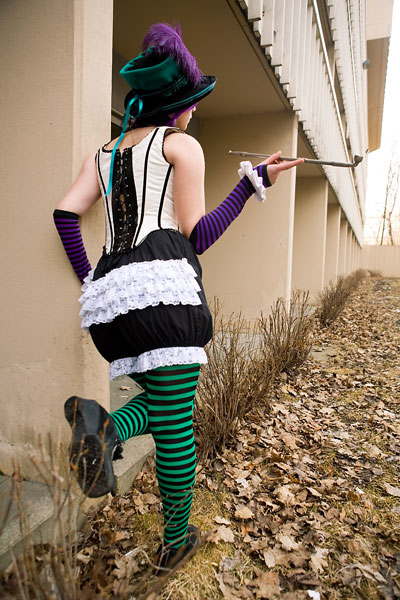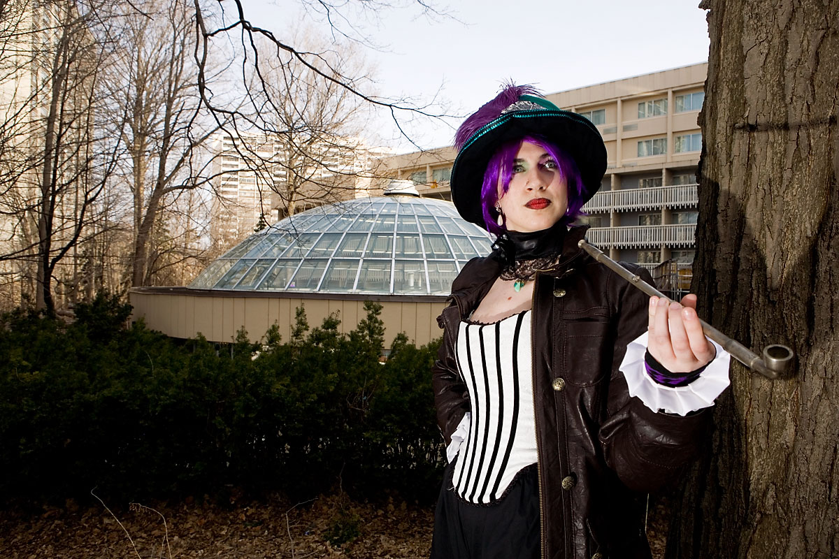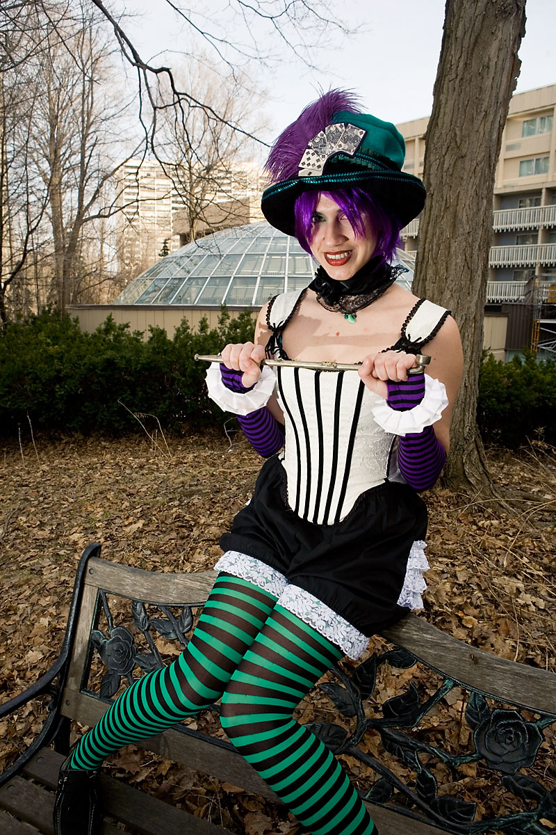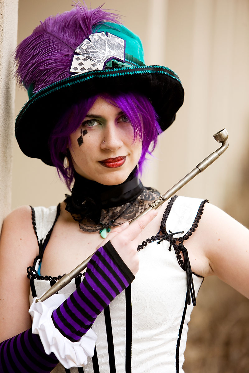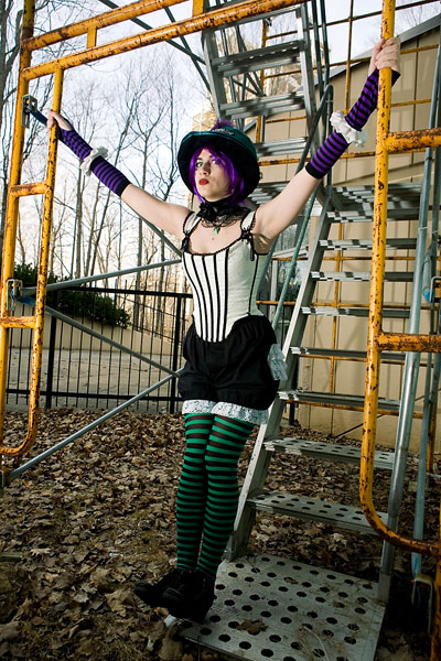 A little bit of a riff on the mad hatter, Megpie was out in her customary funky attire and we managed to sneak in some good photos. In between bouts of her warming up, she was game for wild and wooly photos around the area. Many thanks to the Megpie for being her usual unusual self, and enjoy the photos. |