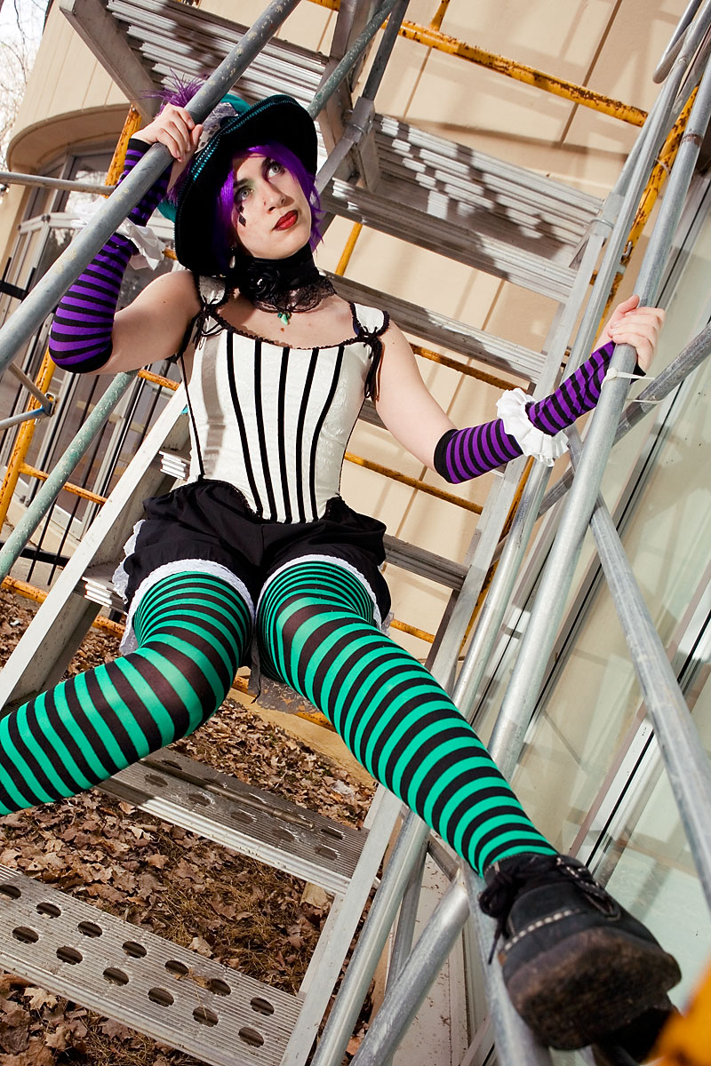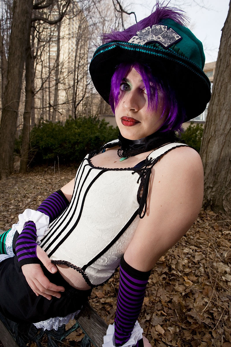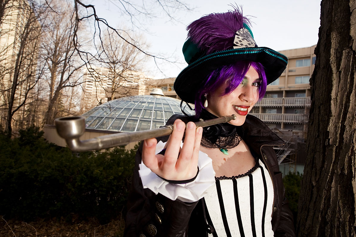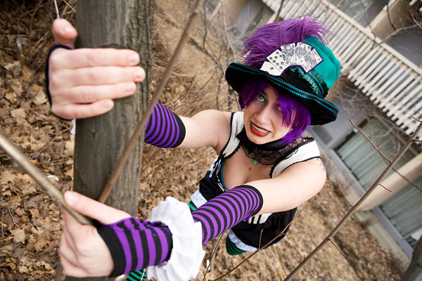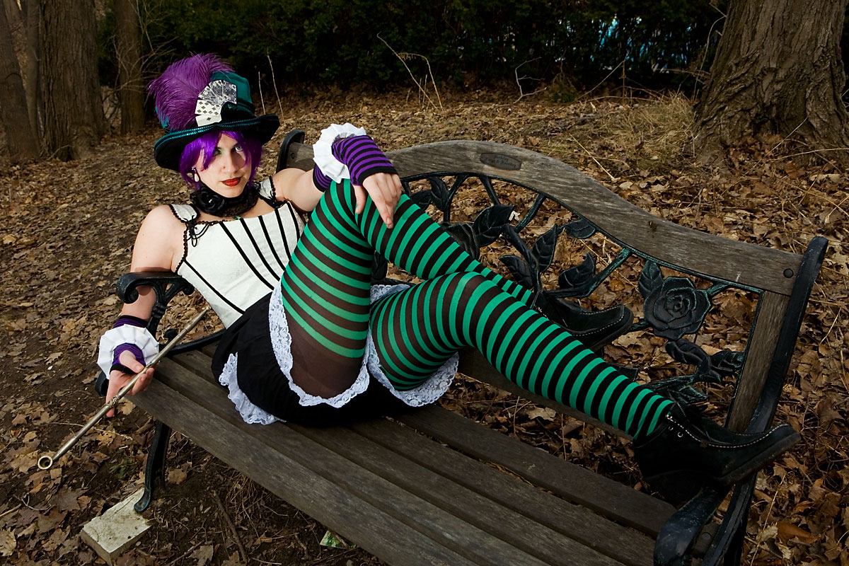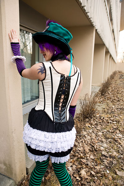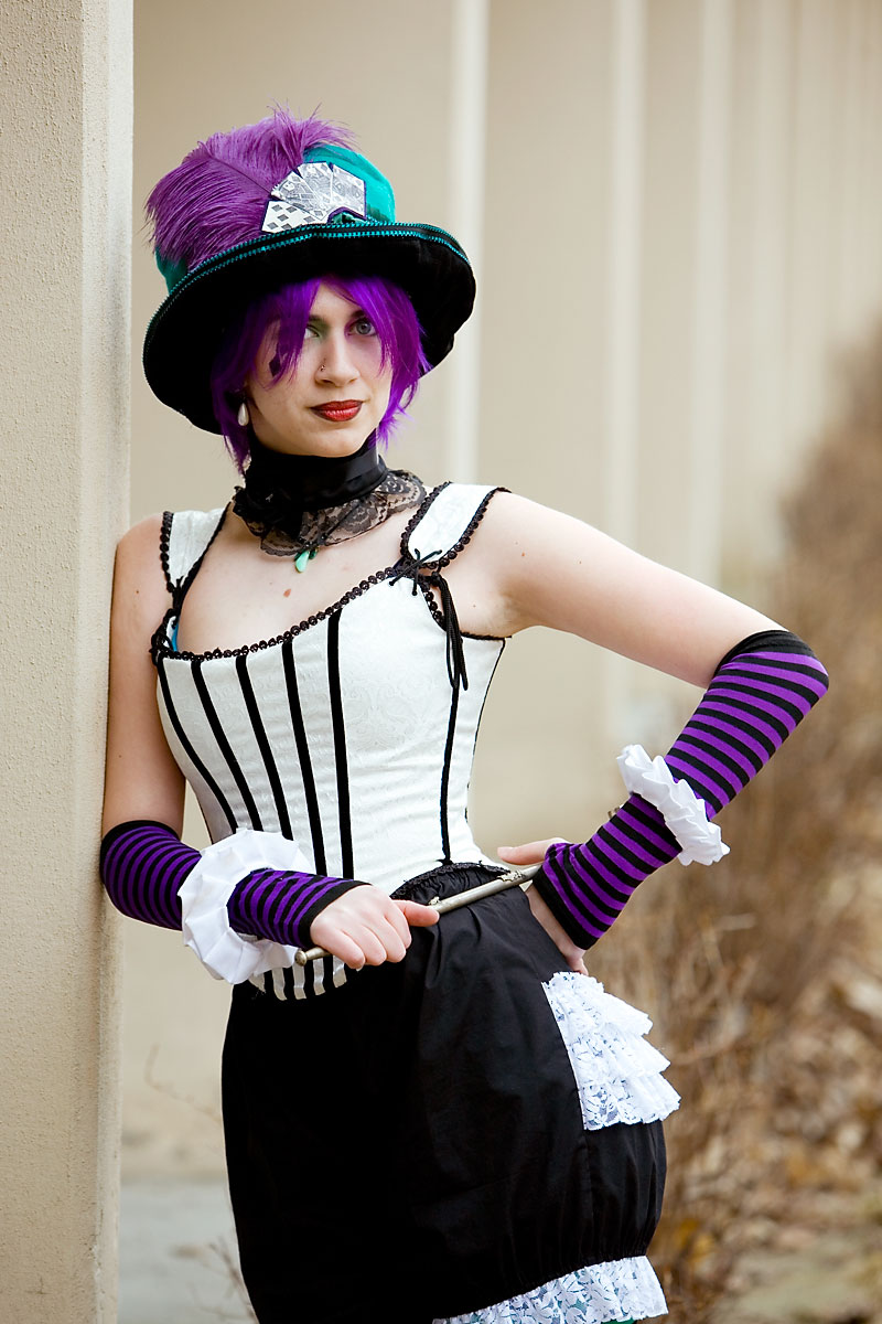A little bit of a riff on the mad hatter, Megpie was out in her customary funky attire and we managed to sneak in some good photos. In between bouts of her warming up, she was game for wild and wooly photos around the area. Many thanks to the Megpie for being her usual unusual self, and enjoy the photos. |