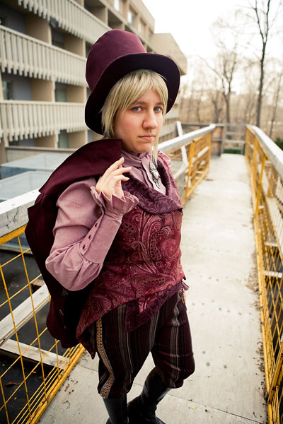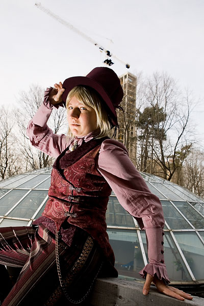 Before running back to my photo panel I snagged some photos of Sae in her steampunk-ish gear around the back area. Given the costume mobility we ran around the area, getting shots on benches, near construction gear, near the pool and pretty much anywhere else we could, so we ended up with a large chunk of pics. Below you can see the highlights. Thanks to Sae for being willing to go into all-terrain mode, and enjoy the pics. |