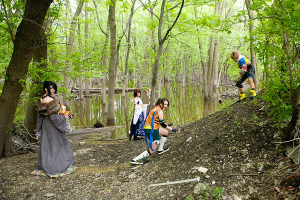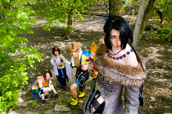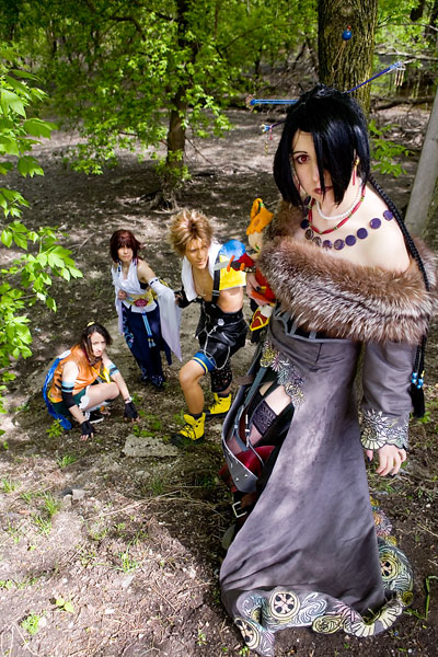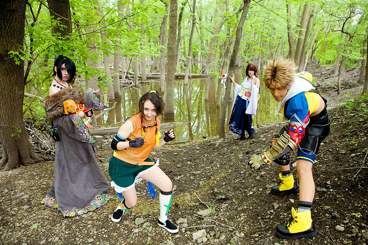 Okay, this set was a looooong time coming. My bad... part of it was that we took a lot of photos, and working through/narrowing it down took a while. That, and well, I'm lazy, sorry. This bunch stuck around for a while and were game for getting some good shots in before some had to flee for masq judging. Braving the heat and the mud, I think we got some nice pics in. The leaves made it a bit tricky - they give everything a green cast that has to be corrected, but I think it worked out. BTW, let me know if you know the Rikku's name - I didn't get it, apologies. Anyway, thanks to all four of them for being so patient, apologies for taking so long, and enjoy the photos. |