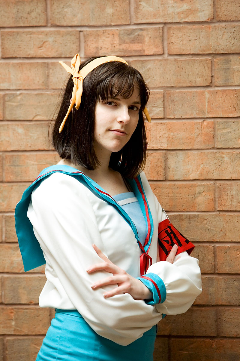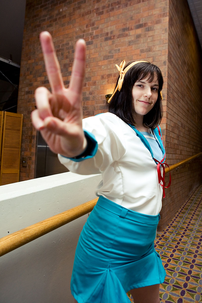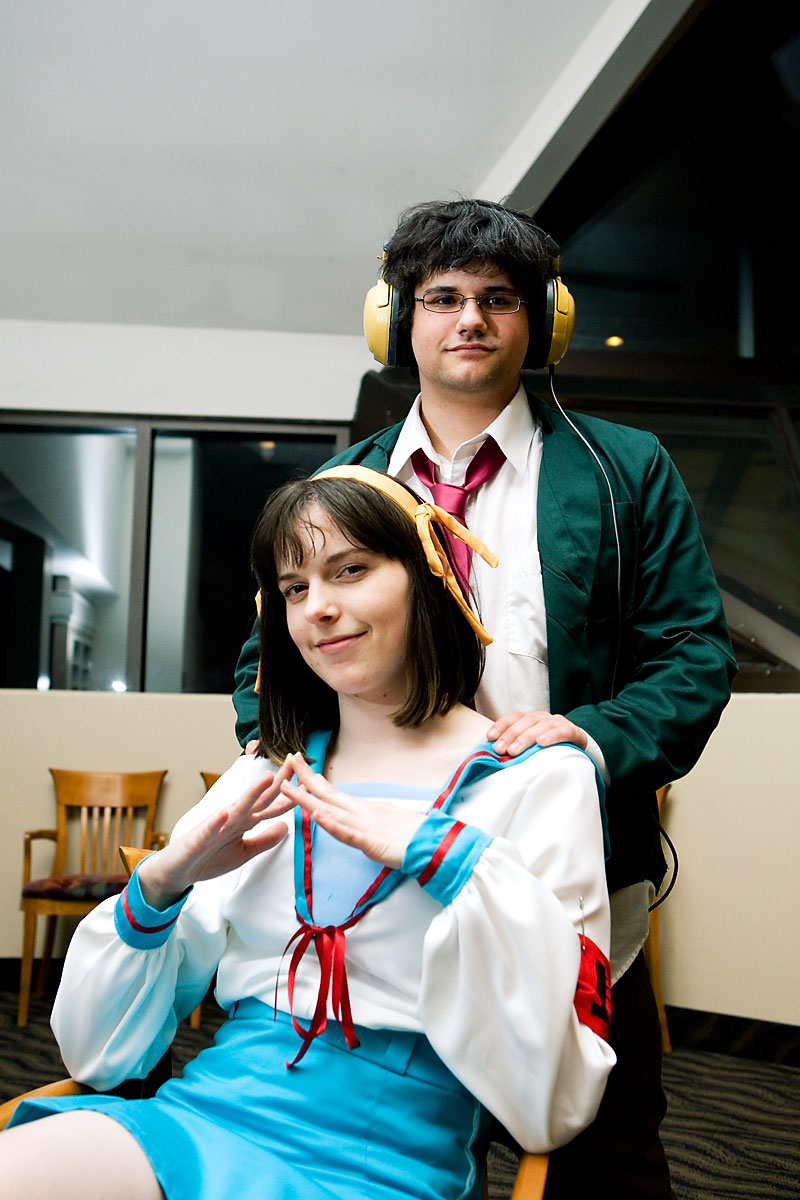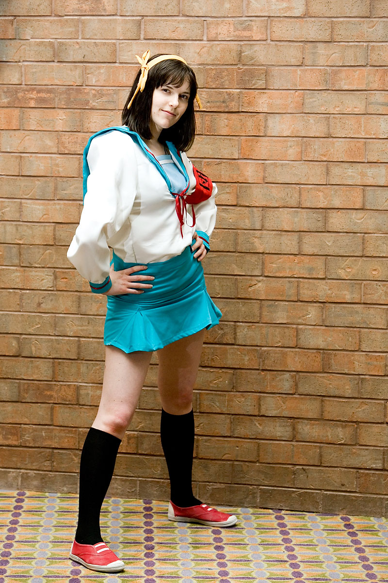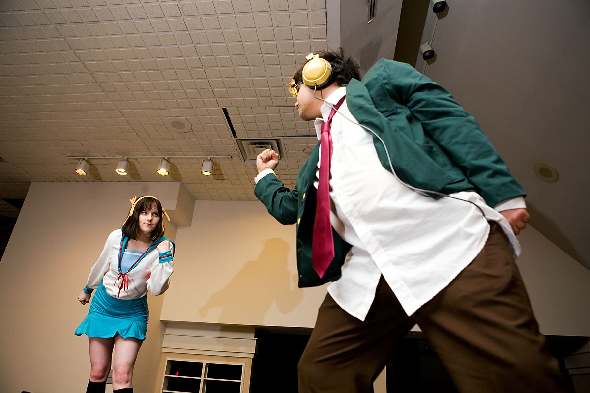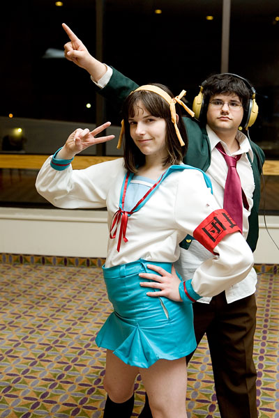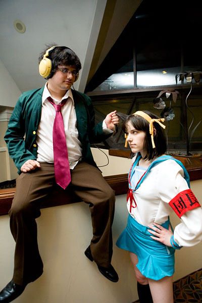 I won't even begin to pretend I understand exactly what's going on here, but apparently these are both the same Haruhi, and I'll just smile and nod and pretend I understand. Anyway, these two were for a late-night shoot before fleeing the scene for the night, so we had pretty open hallways at least. It was a bit dark, and we kinda were all dead, but we got a nice short shoot in, and hey, there'll be more time for good lighting at a future date. Thanks to Lossien and Ray for suiting up again for the late shoot and enjoy the pics. |