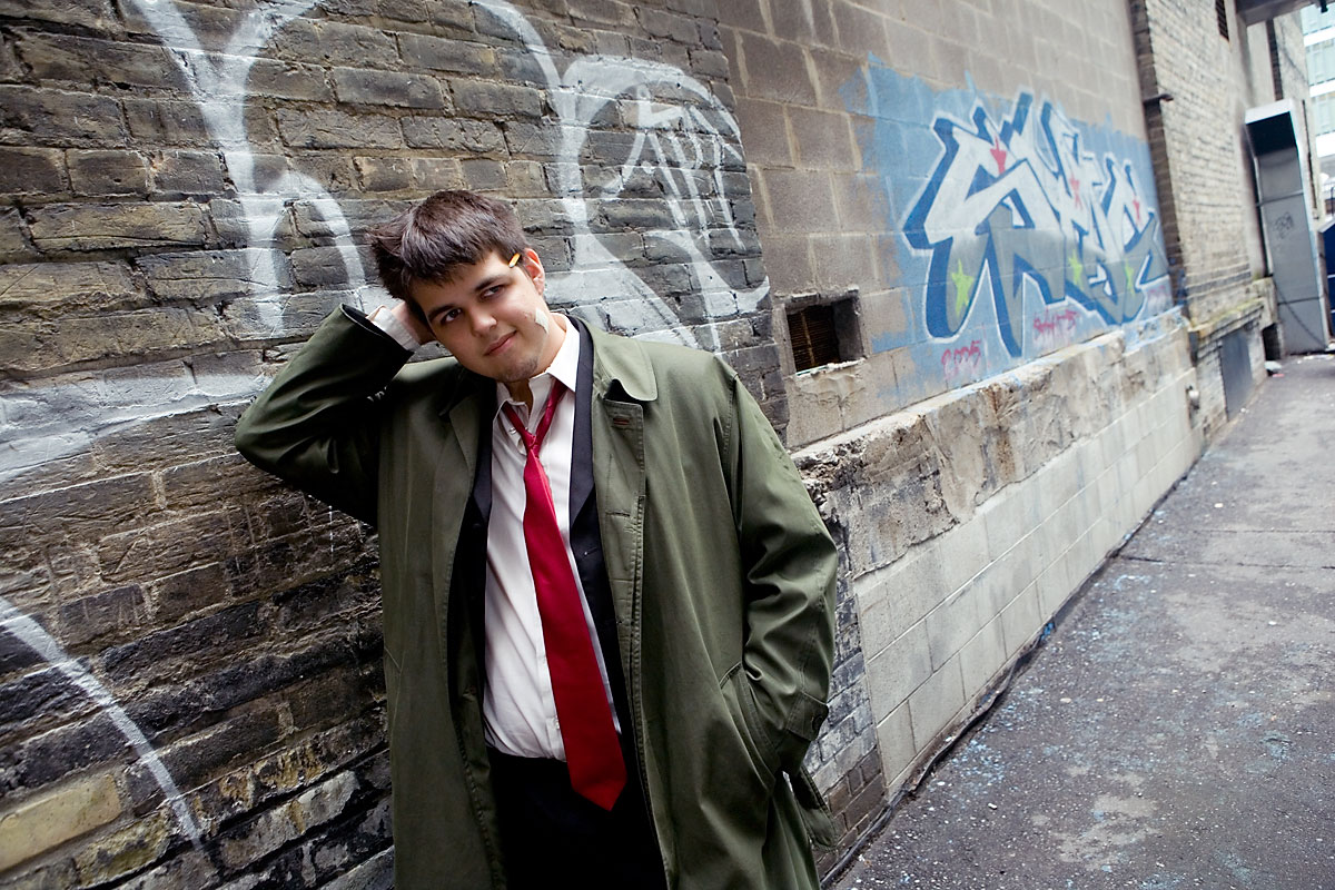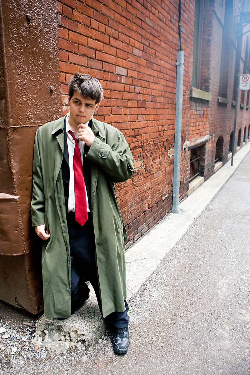 Donin-Eau, being a pop star, had brought along a bodyguard, known simply as her boyfriend. That's the name I was given, so that's the one I'll use. Anyway, along the way we managed to snag some gritty urban photos as Gumshoe, the ever-present detective in the Phoenix Wright series. It was kind of secondary to Domain Eau's shoot, but we got some good photos on the way. Thanks for being the ever vigilant security detail, and enjoy the photos. |
