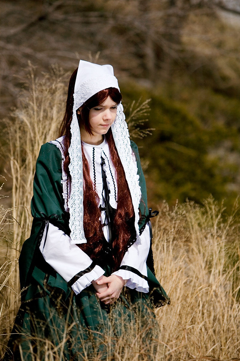 Along with the D. Gray-Man cosplayers, we had a lone Suiseiseki wandering along with us out in the cold. Seeing as the first chunk of photos were all concrete-centric, once we moved nearer to some plant life we split off for a quick side shoot in the one place nearby with anything resembling vegetation. We had pretty limited vantage points for this, and by the end it was "okay, screw the fact you can see modern buildings, it happens", and overall we got a nice portrait set. Thanks to Emily for sticking through with the photo quest until the end, and enjoy the pics. |
