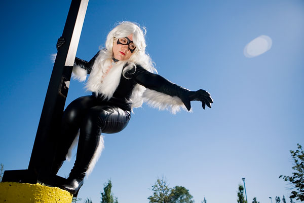 Together with Riku and Kurogane, Black Cat was filmed during a lap of the convention area. Despite the crazy heat, she braved it in all black quite well, and we got some fun shots hanging from various objects and in general. Enjoy the pics...