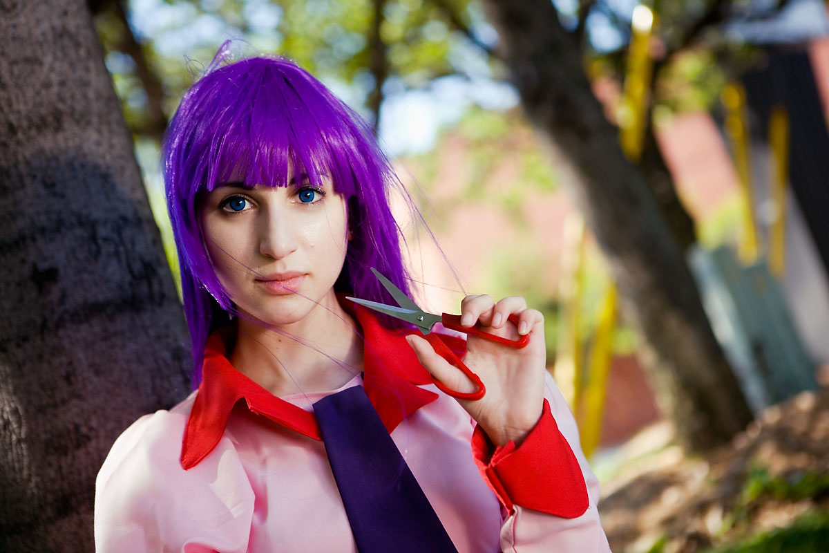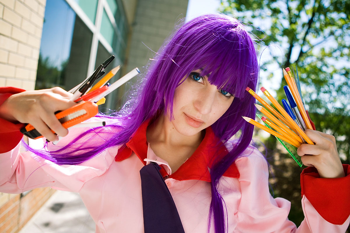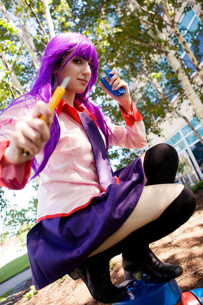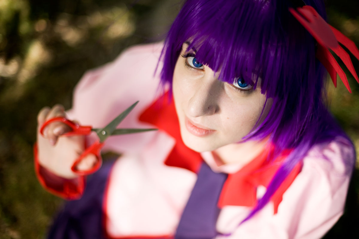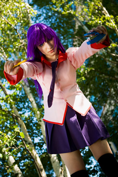 Now, one of the key parts to this shoot was the action shot - the skirt dumping out reams of pens and other implements of death in action. Thankfully, Ika is a major trooper when it comes to things like that - setting up, dumping pens, gathering the bits and doing it over and over again are what you need for a shot like this, and she was game for it. Anyway, I think it paid off, and we had a nice shoot. Thanks to Ika for being such a trooper for so many photos, and enjoy the set. |