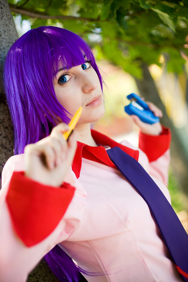 When all you have is lemons, you make lemonade, and when all this character has is office supplies, apparently she uses them as deadly weapons. Or at least, she seems to have them in ready supply for this shoot. Hey, it gives this office-dweller hope that I can defend myself when the zombie uprising begins...