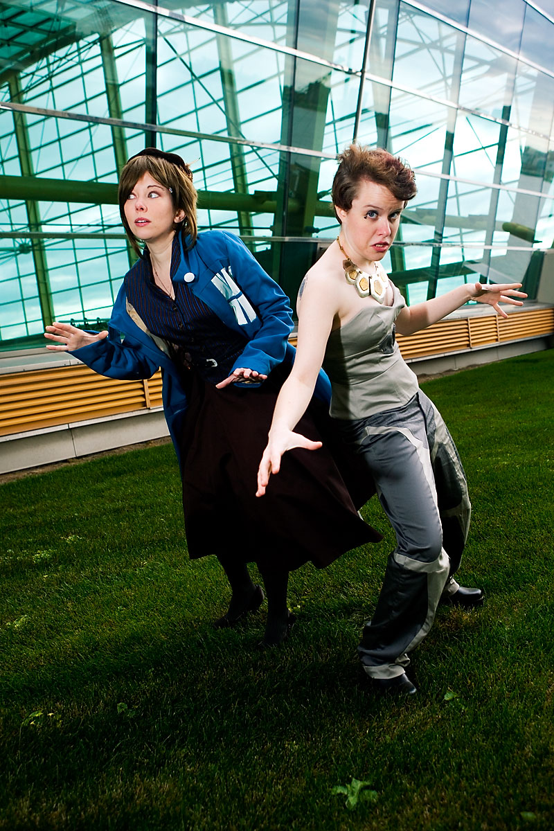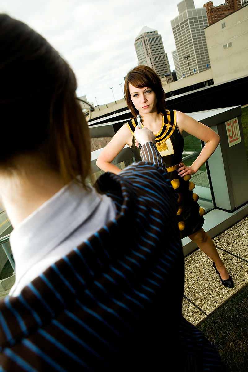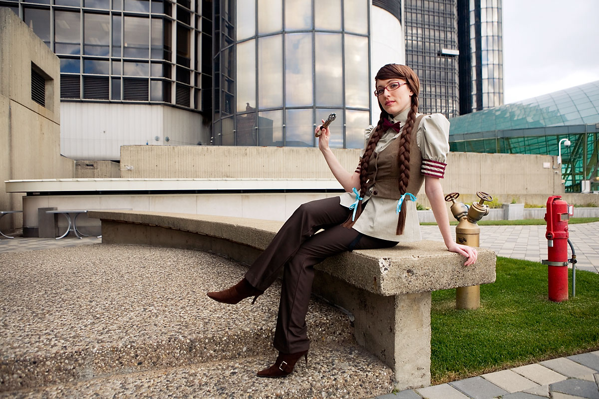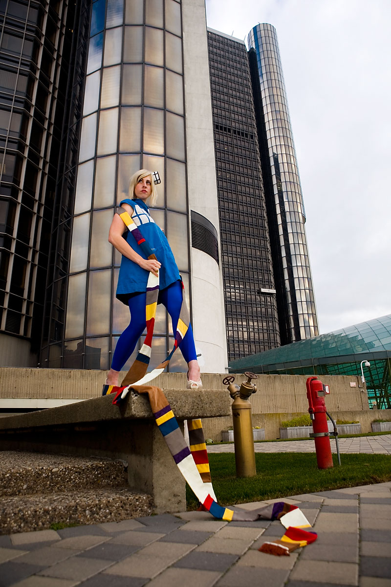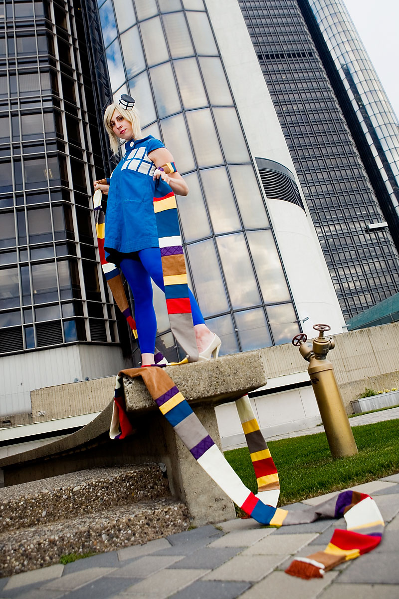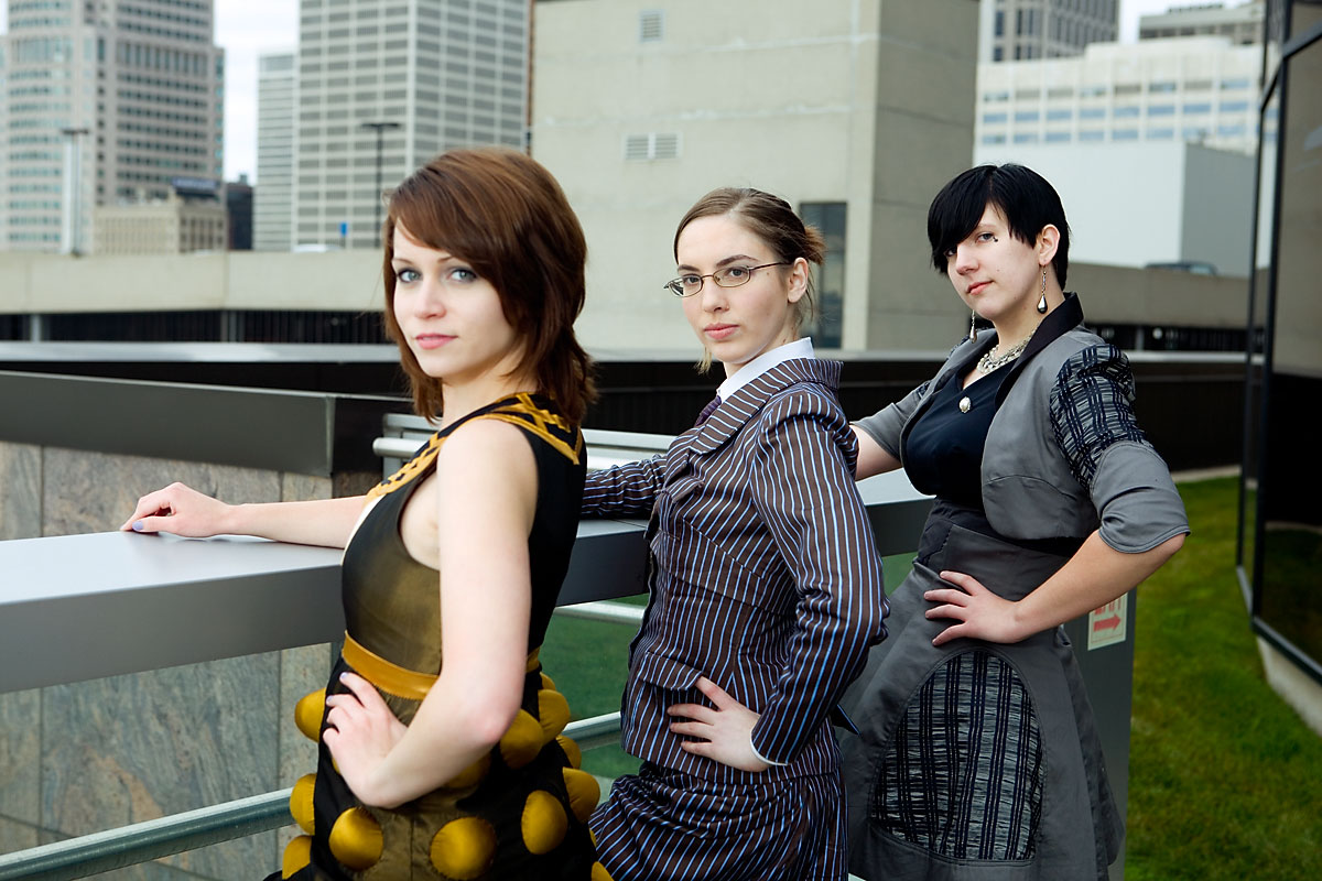 Early on at the con myself and a few other photographers went with Tessceres and company for some shots of the outfits she designed and made based on various Dr. Who characters and elements. Thankfully, we had a bunch of troopers who were willing to face the cold in these shots, so we got some nice photos on the grassy area on top of the mall. I'm short of a few names for the costumes, but I'll fill those in as I get them. Thanks to everyone for being so game for these shots, and enjoy the set. |