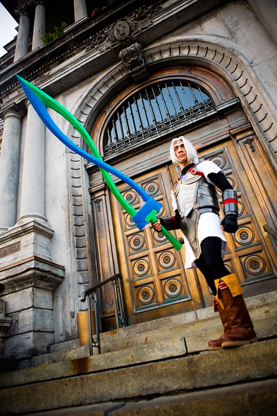 Taken at the same time as the Sailor Moon shoot, we hit up some known-good locations for photos, namely a big door at La Palais de justice de Montréal, and some other building/fountain across the street. Light was a bit short, so we had some dramatic shadows, but overall it worked out well. Thanks to Powerrup for withstanding the slings and arrows of outrageous tourists, and enjoy the photos. |