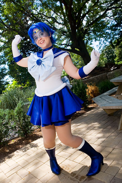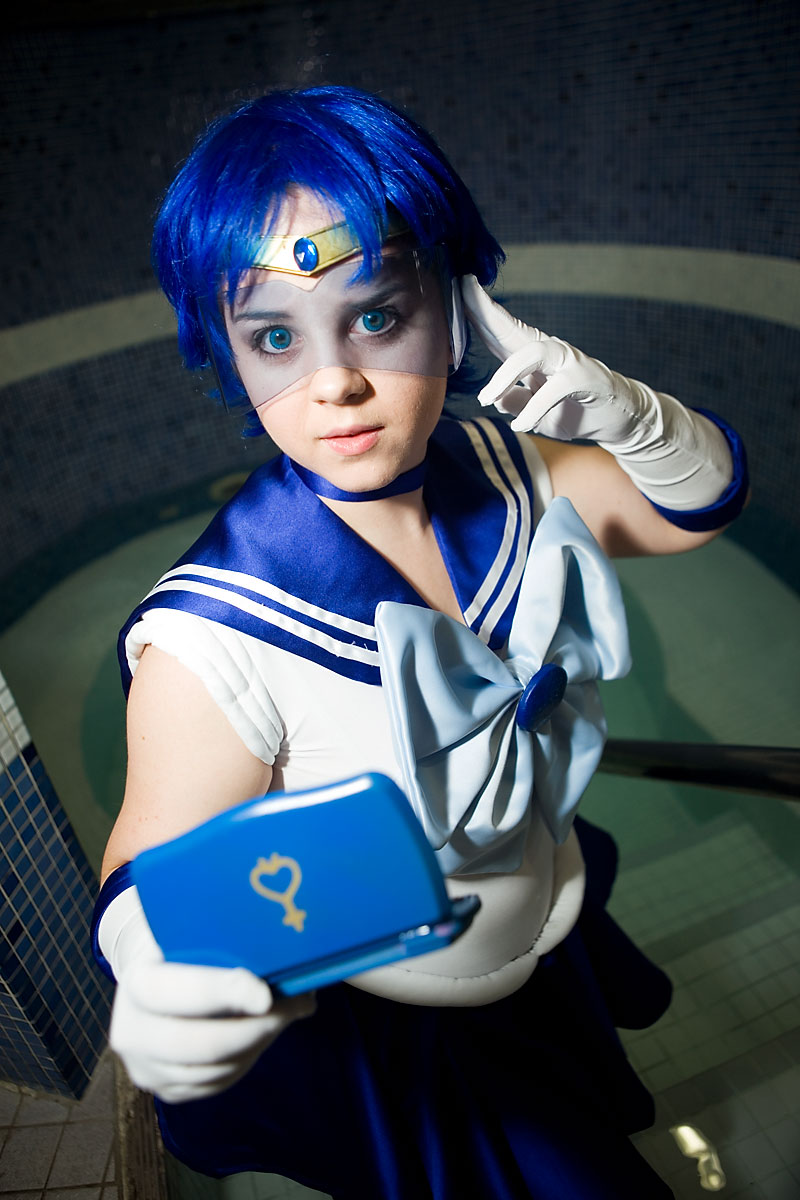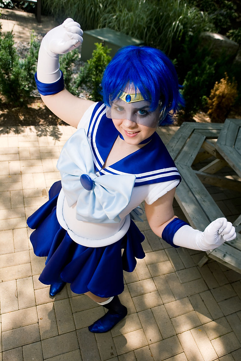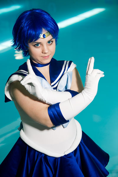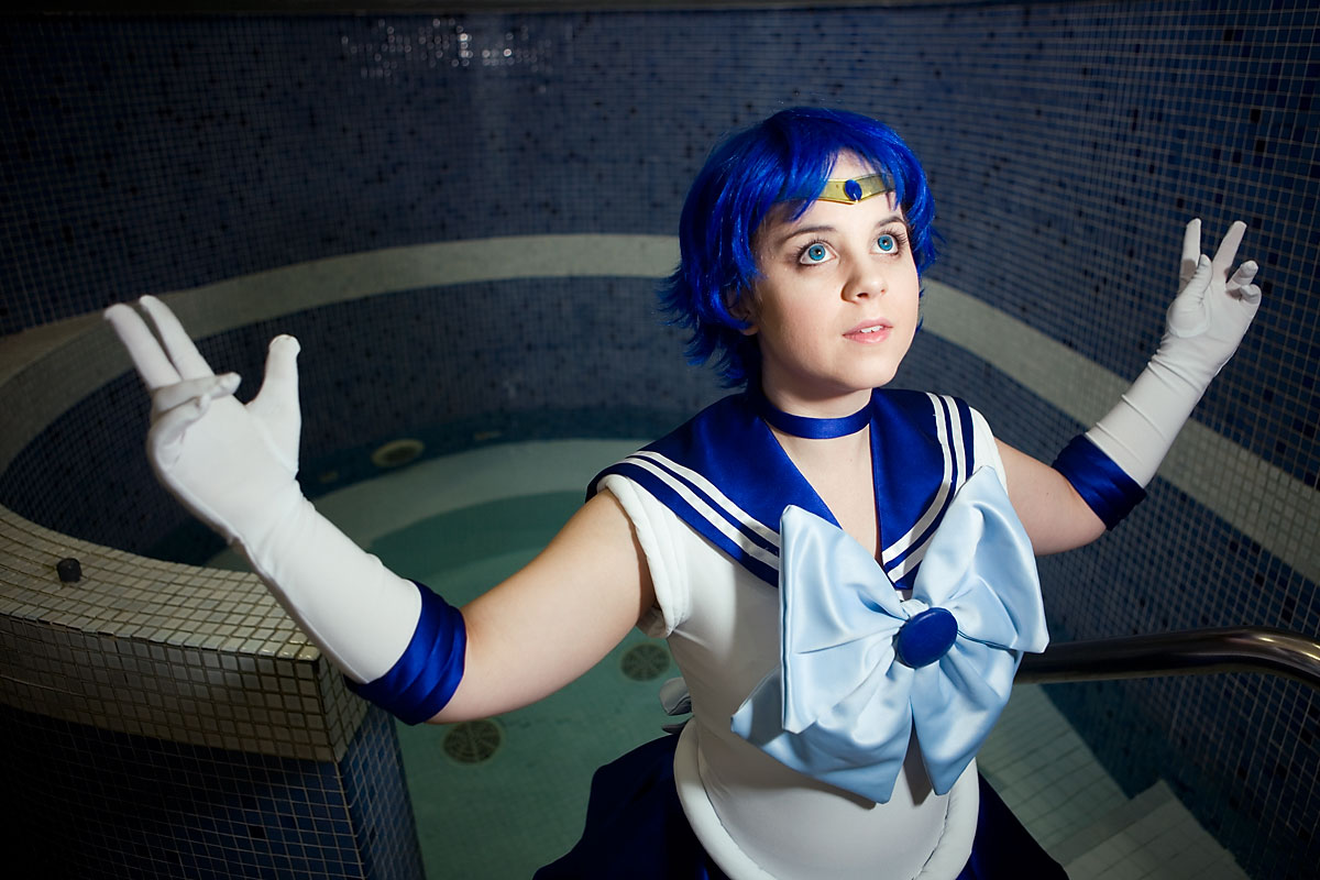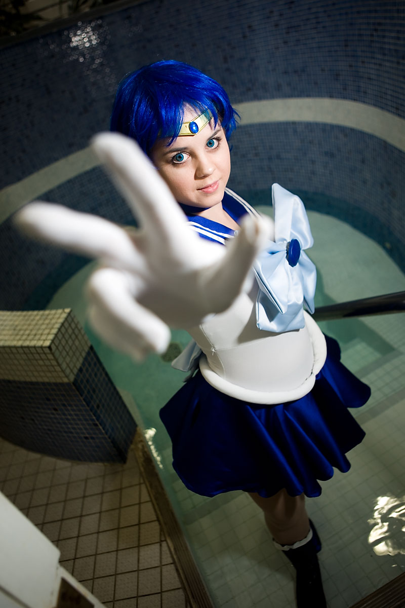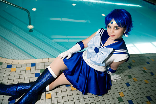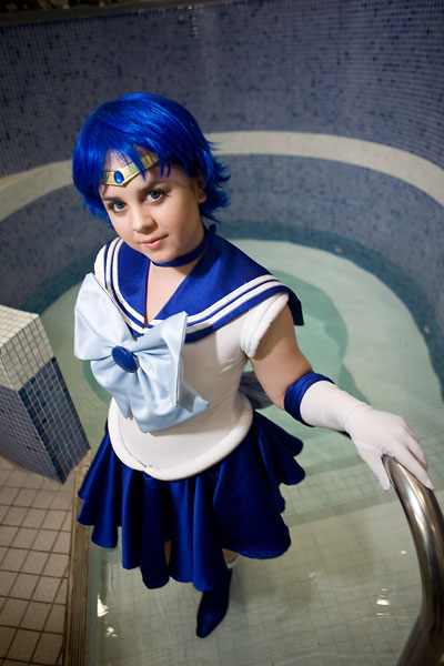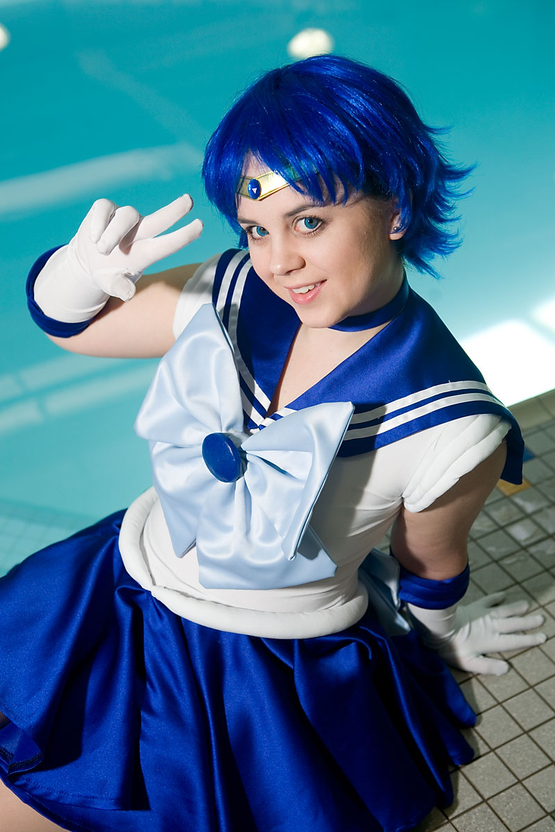 Well, Sailor Mercury is associated with water, so a quick shoot by (and sort of in) the pool made sense...