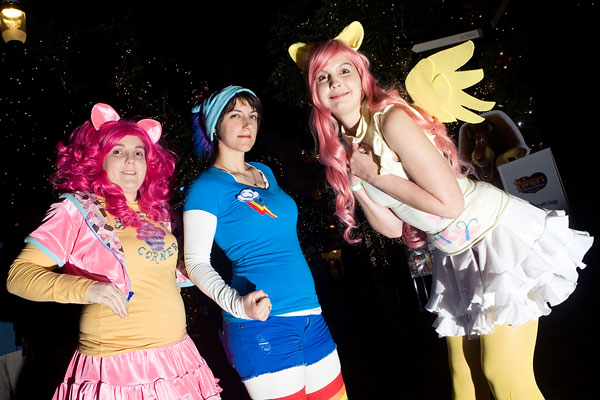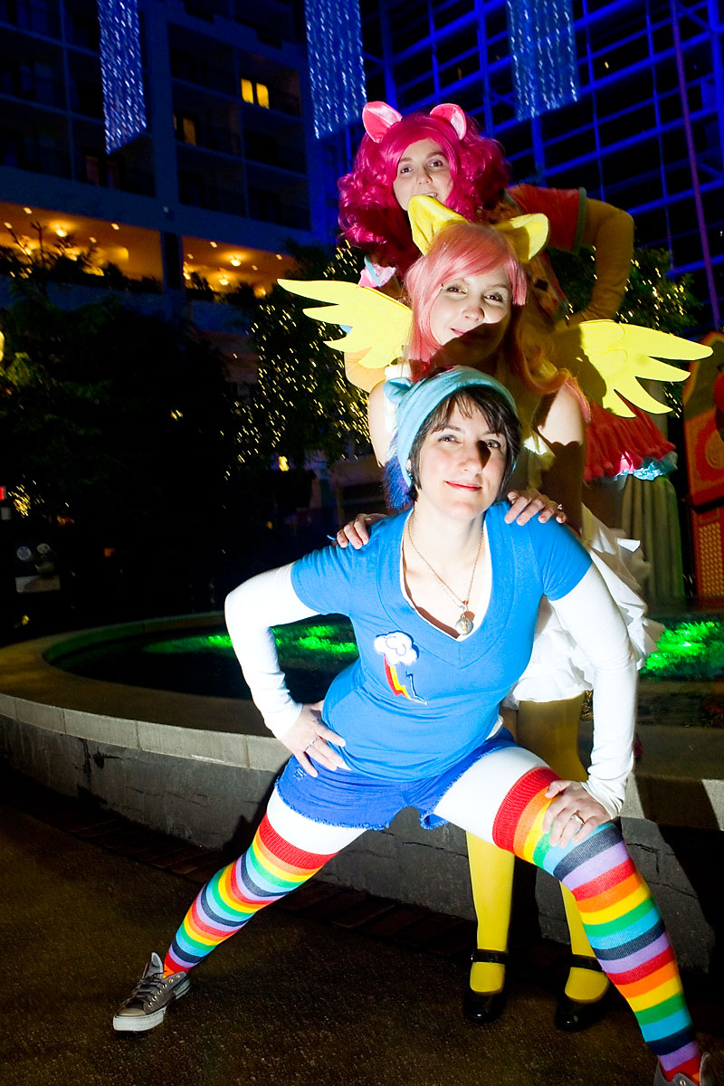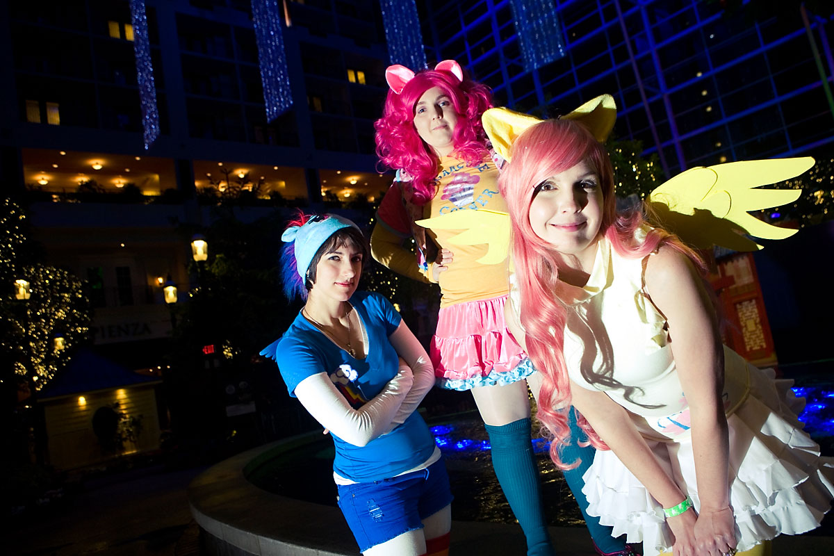 Taking advantage of a quiet moment, some Ponies cleverly disguised as con vendors broke off to get some shots at night. Lighting was a bit tricky, but I think we managed to get some cute shots. Thanks everyone for taking part, enjoy this 20% cooler photoshoot. |