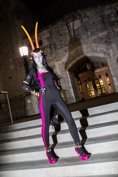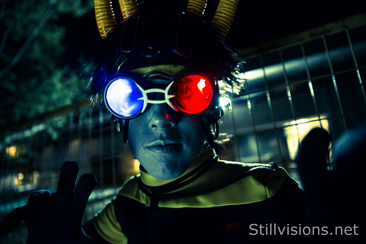 It was late, but we needed food, costumes be damned. After eating at a nearby pub, we decided to get a few photos of the funky costumes before calling it a night. Campus security gave us a few stares, but were otherwise okay with us shooting in the dead of night. Anyway, it all worked out okay, and we got some fun photos. Thanks to everyone for putting up with holding really still at night, and enjoy the photos.