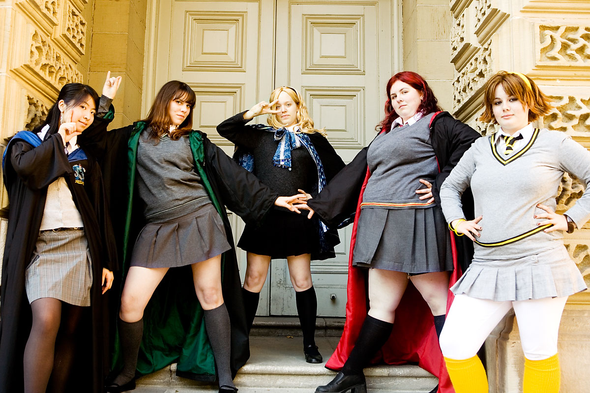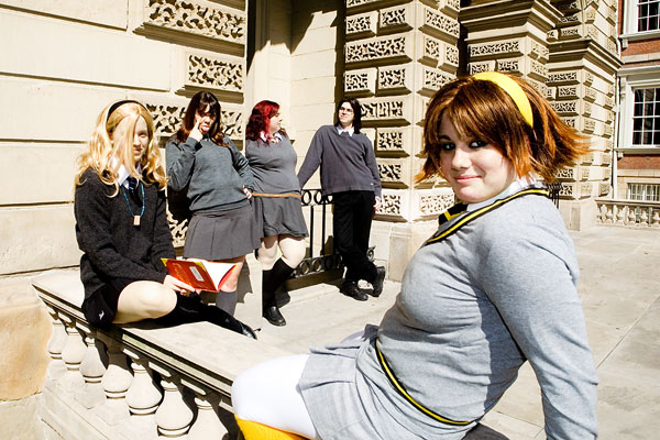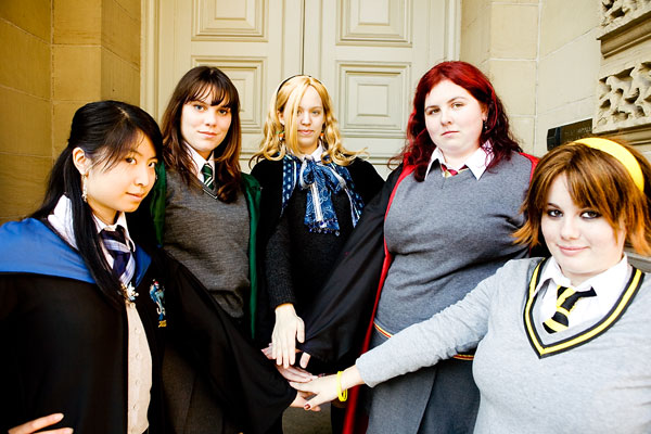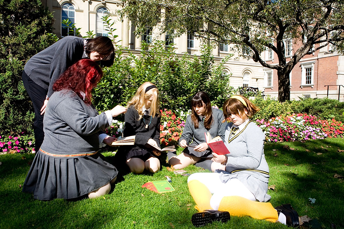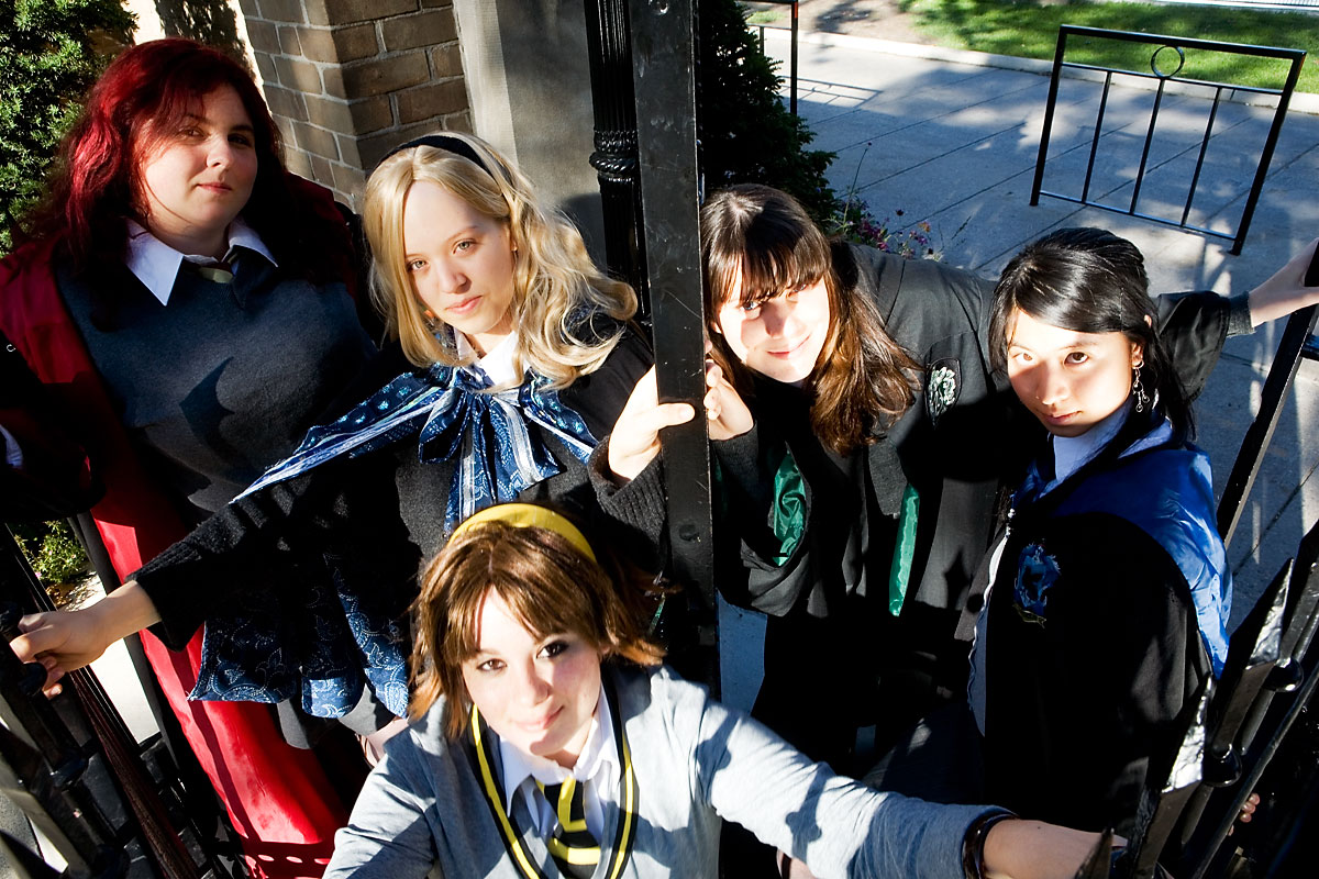 Hogwarts and friends cosplay photoshoot, Osgoode Hall, TorontoGroup photos with the Sorceror Scouts...Source: Harry PotterBack to Gallery Index | Back to EventsThe last set posted, here's some pics of the hogwarts gang in action. Okay, in the "action" of standing about for group photos, and occasional spinning, but you get the idea. Bright sunlight played havoc, like it did for much of the shoot, but overall, we got some nice group shots in, both serious and fun. Fun for all, I hope. I'm not super-happy with my group photo skills, mind you - something I have to work on I guess. Still, we've got a few highlights to share here. Thanks again to everyone, and enjoy the pics... |