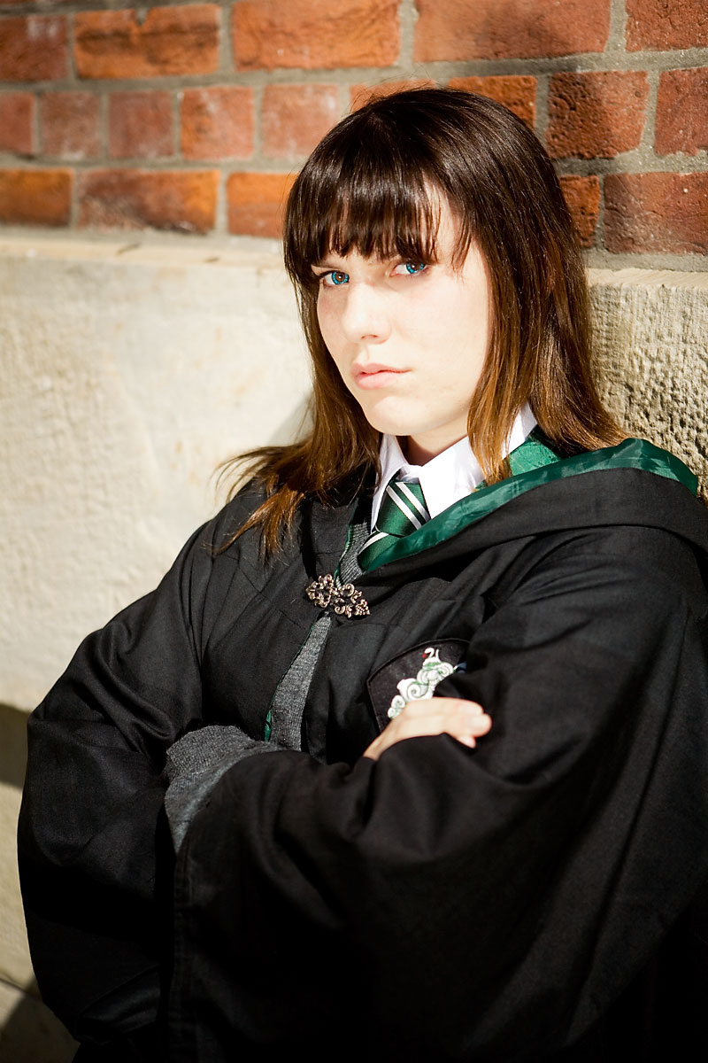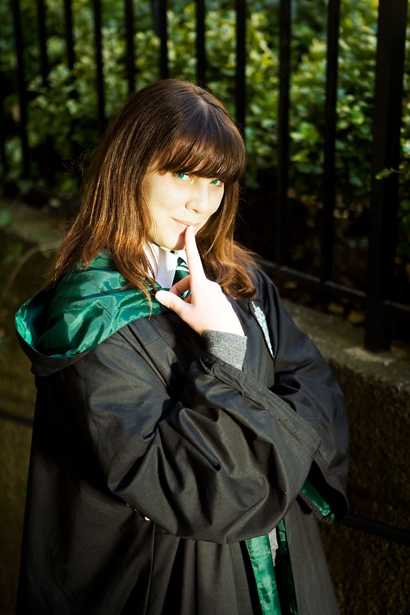 Hogwarts and friends cosplay photoshoot, Osgoode Hall, TorontoGilly as Sally SlytherinSource: Harry PotterBack to Gallery Index | Back to EventsOkay, I have no idea about the name, other than it coming to me from a mangling of an old Stone Roses song title... As you can tell by the photos, it was sunny outside. Very sunny - we didn't get many shots in the shade, so this shoot is kinda limited. Gilly was awesome, enduring blinding light for the shots, and these are some of the highlights, but at some point we'll have to get another shoot in to make up for the sunburn in this set. Note to self - learn how to block the sun with my mind powers... Thanks to Gilly for being a good sport and giving some nice poses, and enjoy the pics... |