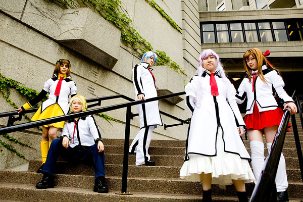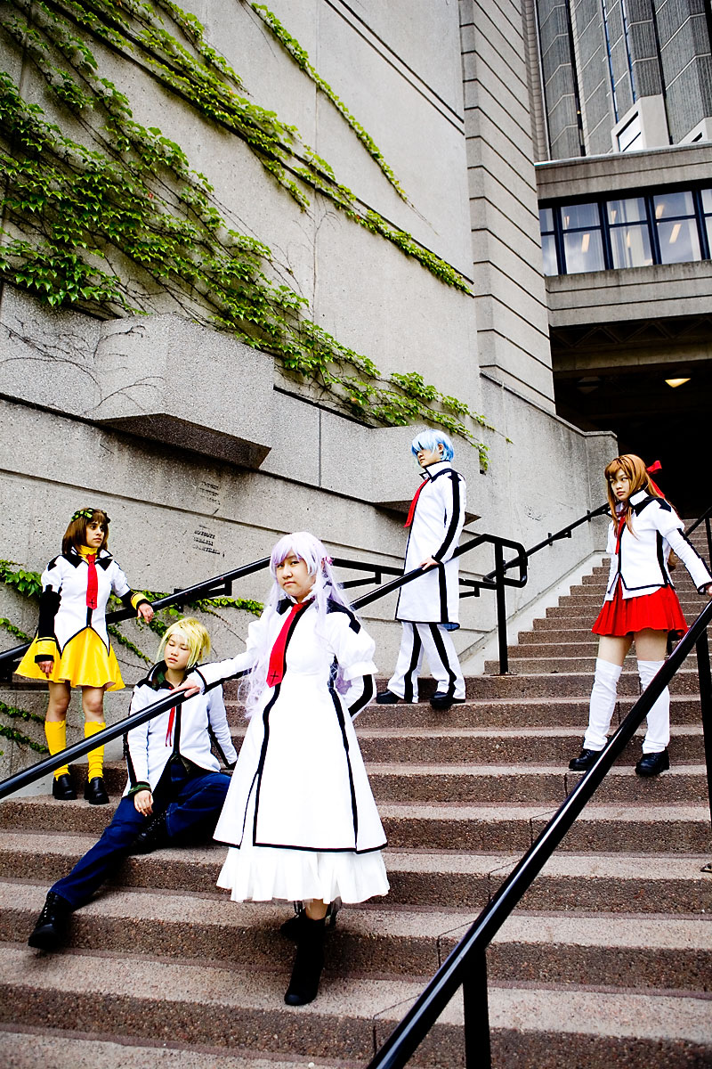 Shinshi Doumei Cross photoshootjuly 15, 2007, University of TorontoGroup Photos part 1Back to Events | Back to Gallery IndexFrom way back in time, here's part one of the paired and group photos taken from the Shinshi Doumei Cross photoshoot. I haven't read any of this manga, but from the sounds of things it's pretty interaction-dependent, meaning that paired and group shots were really prevelant here. I'm kinda weak on both group shots and outdoor shots, so I was really happy with this set as being a good step forward for me. I'm not super-happy with the full group shots here, but they're a step forward from some of my previous larger group pics, so I'll take it as a step forward. Anyway, there's another dozen or so pics in part 1. Thanks to all for the posing and putting up with me, and enjoy the pics. |