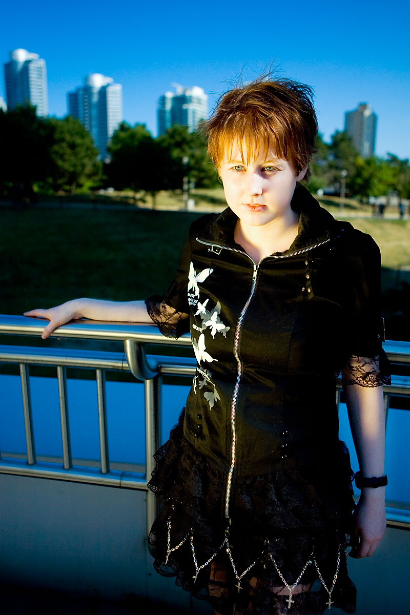 Crimson's photoshootJuly 29, 2007, Toronto ONBack to Events | Back HomeA quick day out - Amanda, Kevin and I headed out with Crimson for shooting at various locations. Our original spot didn't work out. Note to Cadillac Fairview - people with cameras are not necessarily terrorists, and really, three people with very obvious cameras are not a threat to the TD centre. Please let your security know when they see people outdoors taking photos. Thanks... *ahem* rant over. Anyway, after that we headed around Union Station and skywalk for photos. I just love the cool colours that came out with the shoot, and it was tough culling the set down to the highlights below. The light was natually soft, the colours worked really well, and Crimson was great at letting the three of us photograph her until there was no more light. Extra thanks to Crimson - you look awesome, and it was a great shoot. Enjoy the pics everyone... |