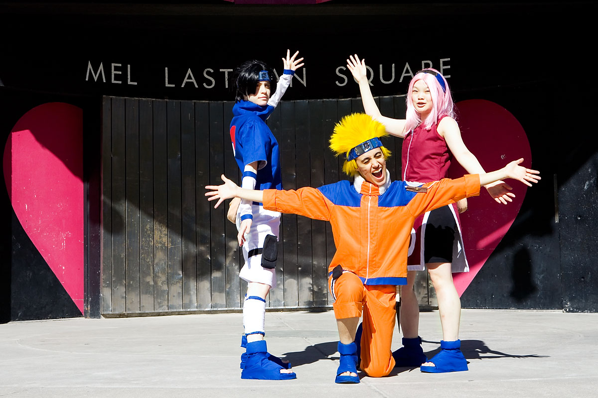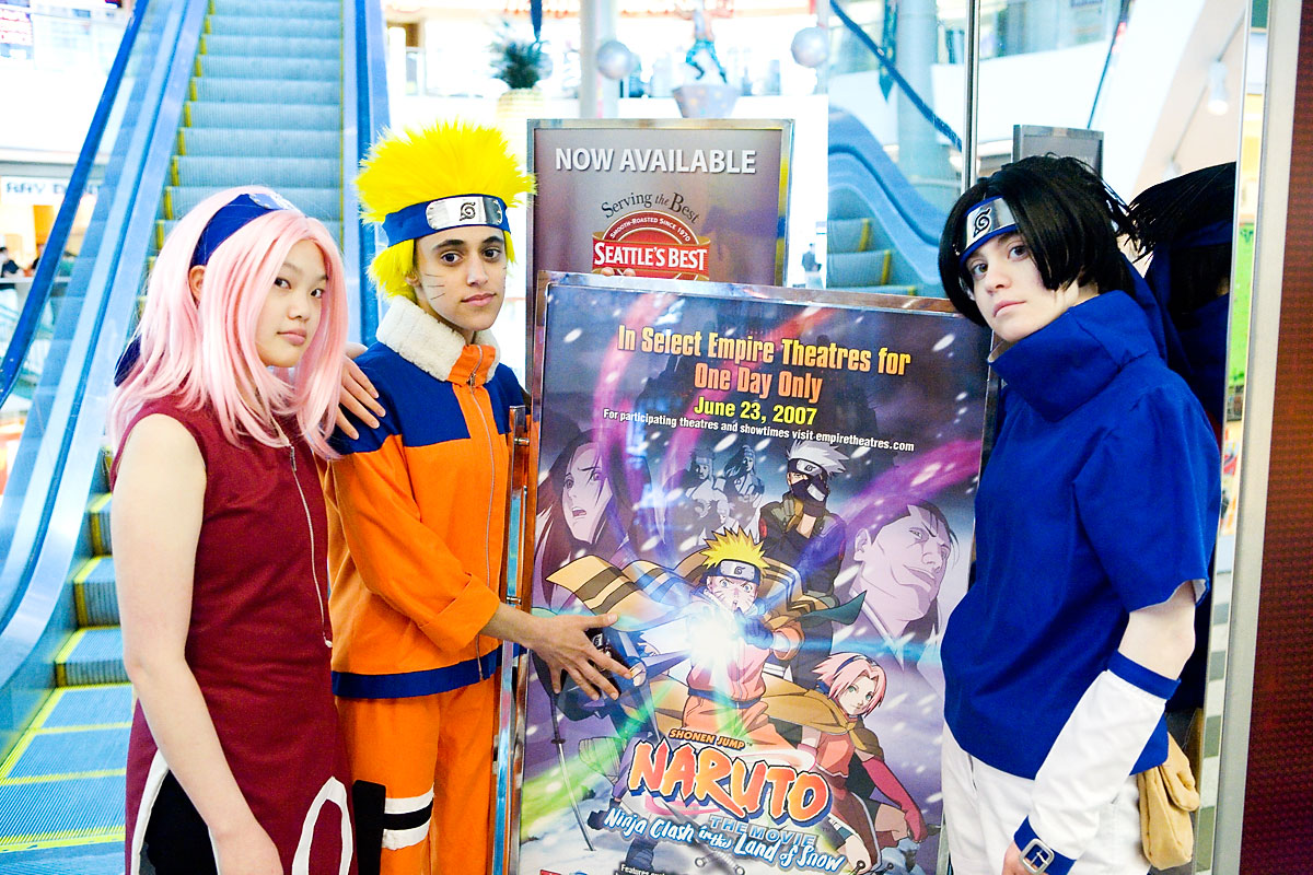 Naruto the Movie: Cosplay Photos - June 23, 2007Group PhotosSource: NarutoBack to Gallery Index | Back to EventsWay back, before time began, I was at the Naruto movie taking pictures. I was testing out a new lens, so some shots were a bit soft, but I managed to snag a few goofy highlight pictures of our photoshoot beforehand and just general sillyness on our part. Anyway, many thanks to the triumphant trio for their posing, not to mention getting up so early for a movie, and enjoy the photos. Until the next I-can't-believe-this-isn't-direct-to-dvd-movie premiere... |