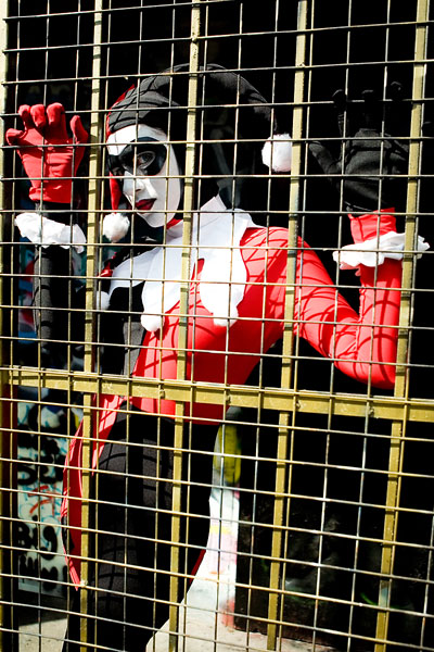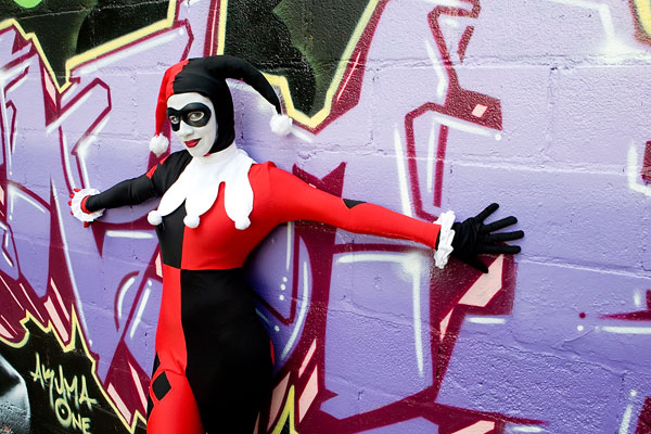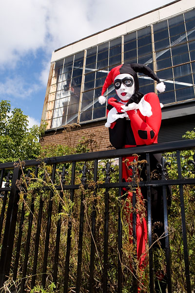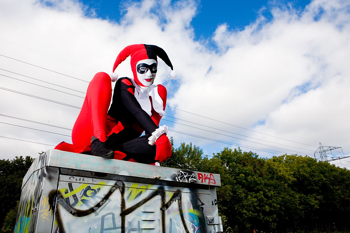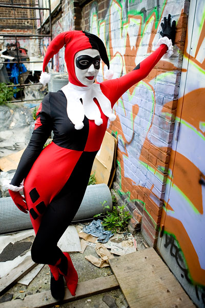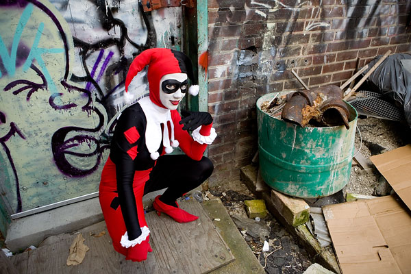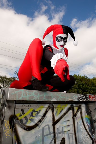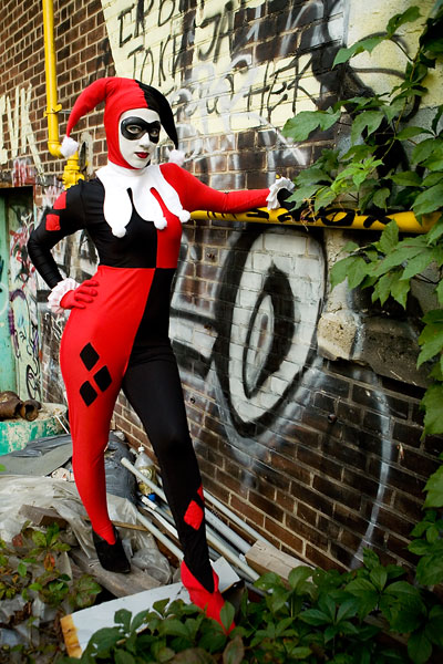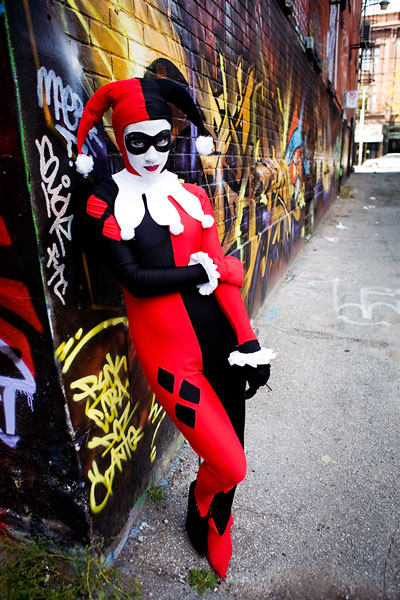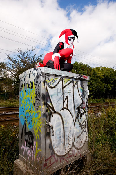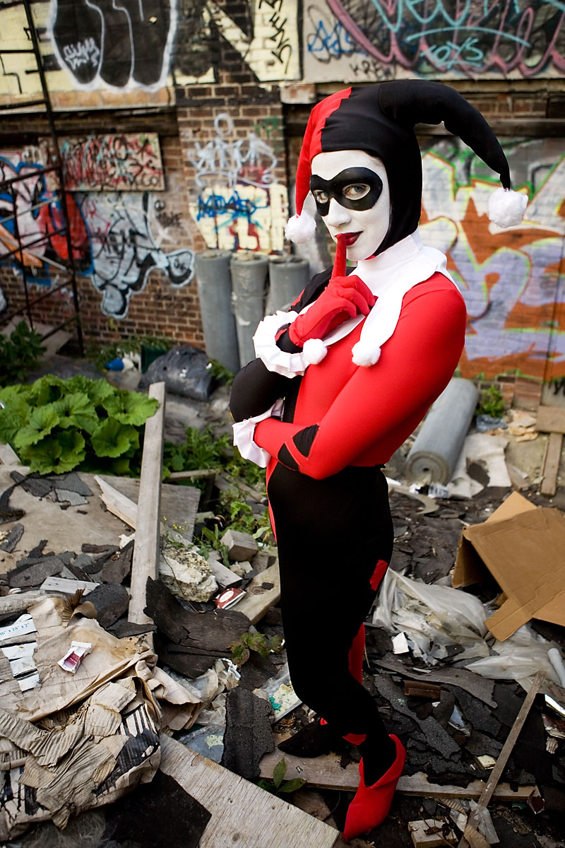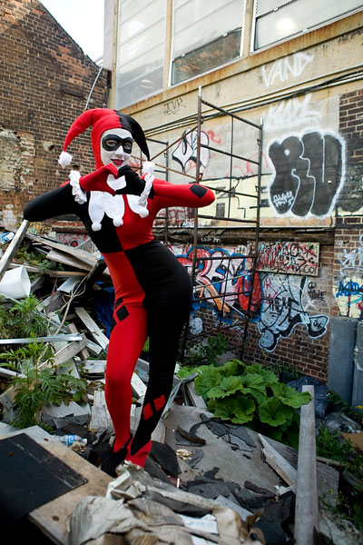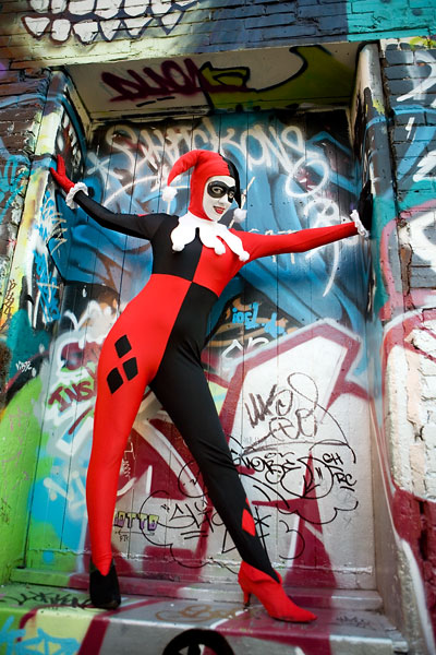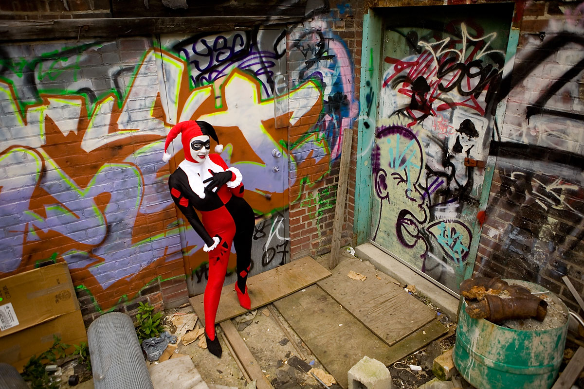Later, we moved over to an area downtown open to graffiti, open for contests and just general use, and it gave lots of nice colour to a dark alley. Megpie was awesome, happy to climb rail switches, trash heaps and window ledges and show her sexy-but-psycho Harley Quinn look. Thanks to Megpie for running around a major city in spandex, and enjoy the photos. |
