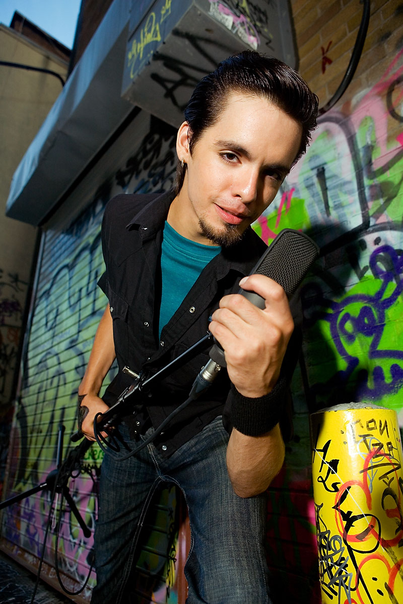 No stranger to photoshoots, Alex came ready and willing for shots. Sporting kind of a "young Elvis" look, I had a retro-looking microphone handy to complete the look and let him croon for the pics. Thanks to Alex for making it look easy, and enjoy the pics. |