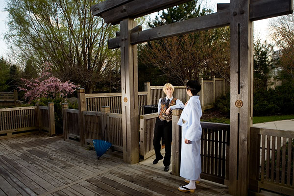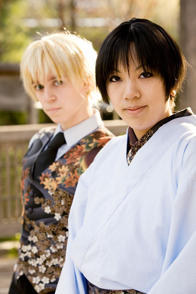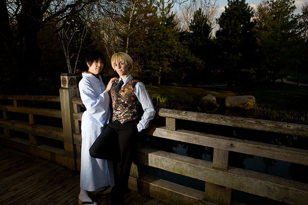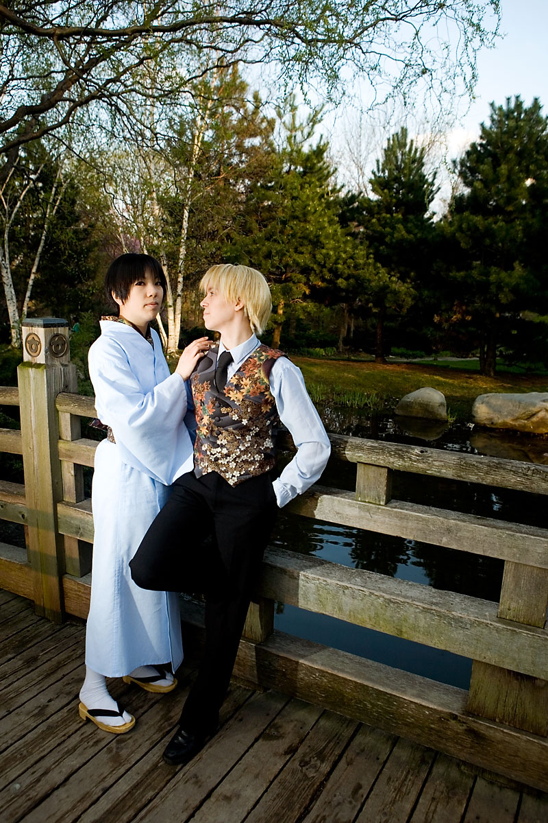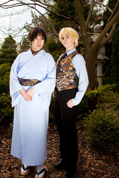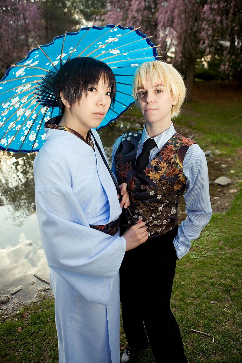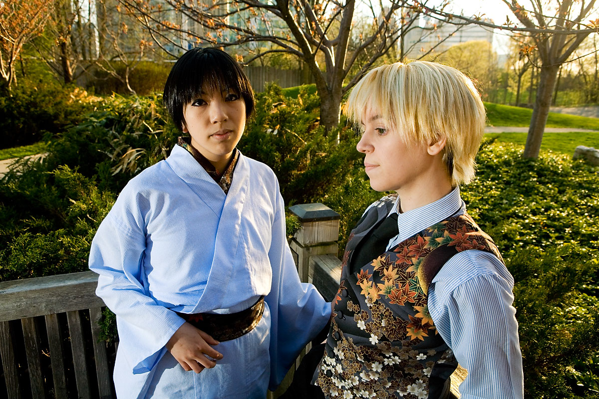 Okay, so once again we're dealing with international relations in cute chibi anime format with Hetalia. Here we have England and Japan, in a little mixing things up, out together for a day in the park. We were losing light but we managed to get a bunch of shots in, including some massive big-cute-eyes Japan pics, because, well, Japan would be into that sort of cosplay photo angles I guess. Thanks to these two for coming out after the rain to pose at length together, and enjoy the pics. |