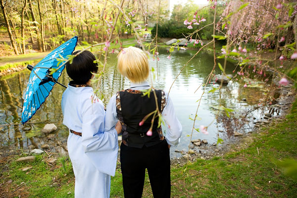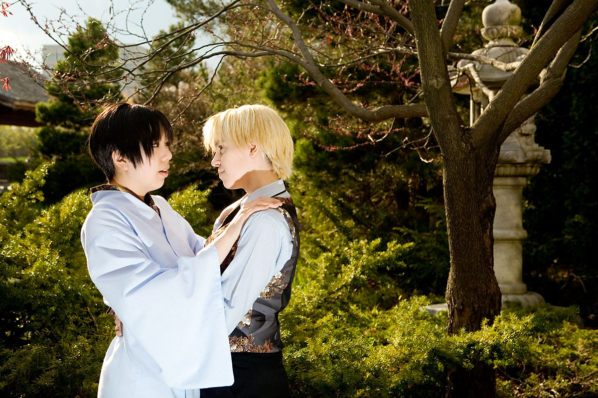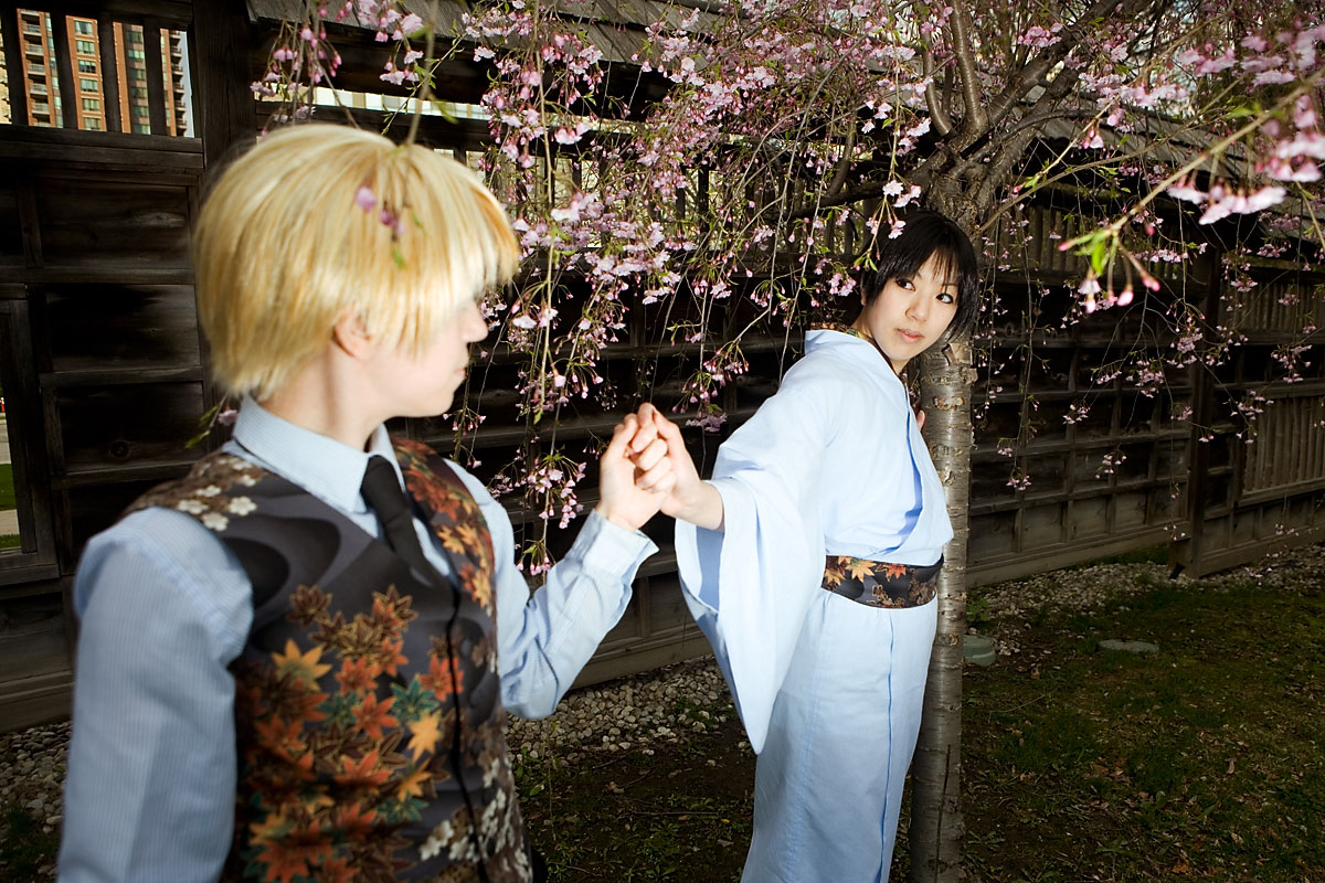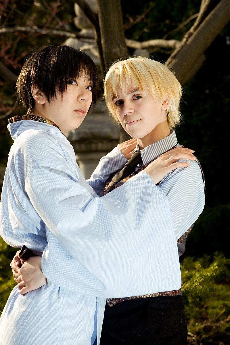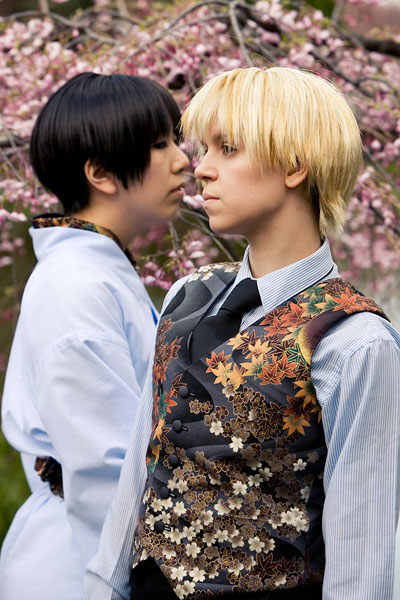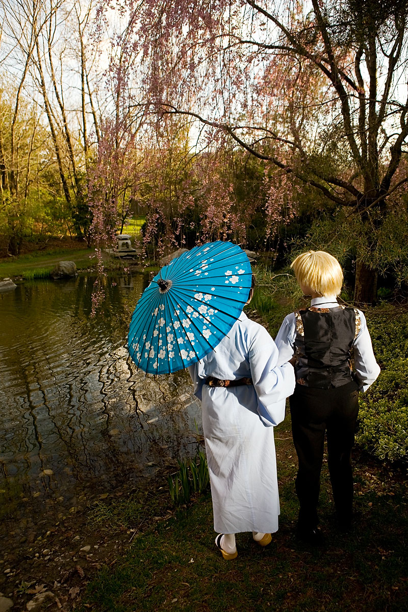 Okay, so once again we're dealing with international relations in cute chibi anime format with Hetalia. Here we have England and Japan, in a little mixing things up, out together for a day in the park. We were losing light but we managed to get a bunch of shots in, including some massive big-cute-eyes Japan pics, because, well, Japan would be into that sort of cosplay photo angles I guess. Thanks to these two for coming out after the rain to pose at length together, and enjoy the pics. |