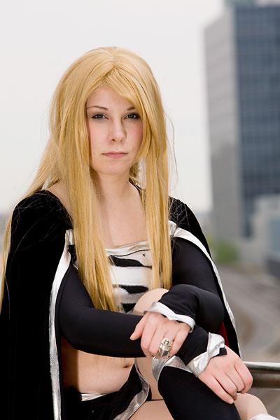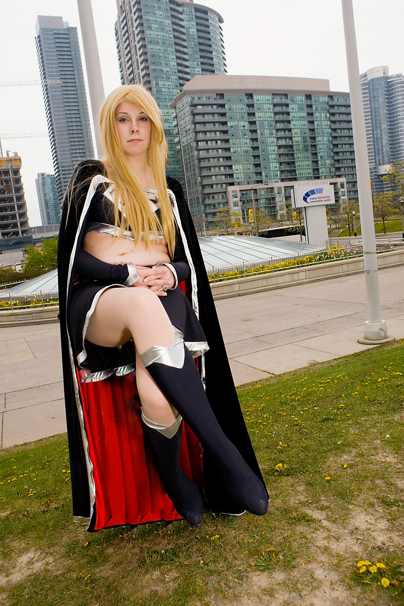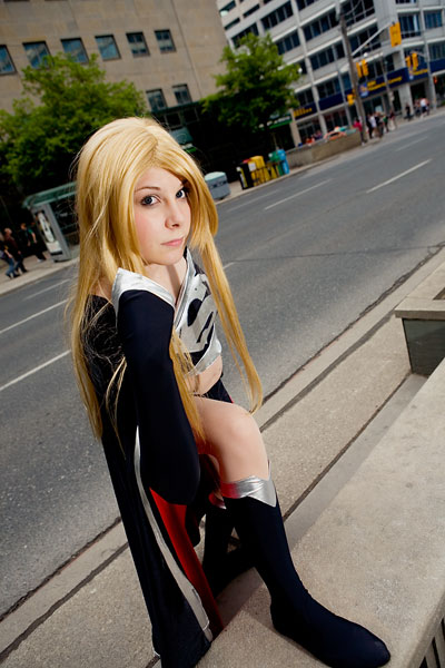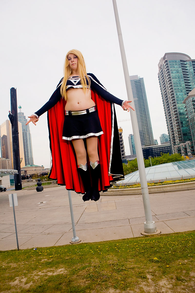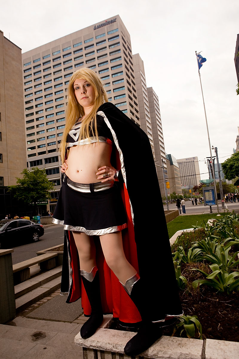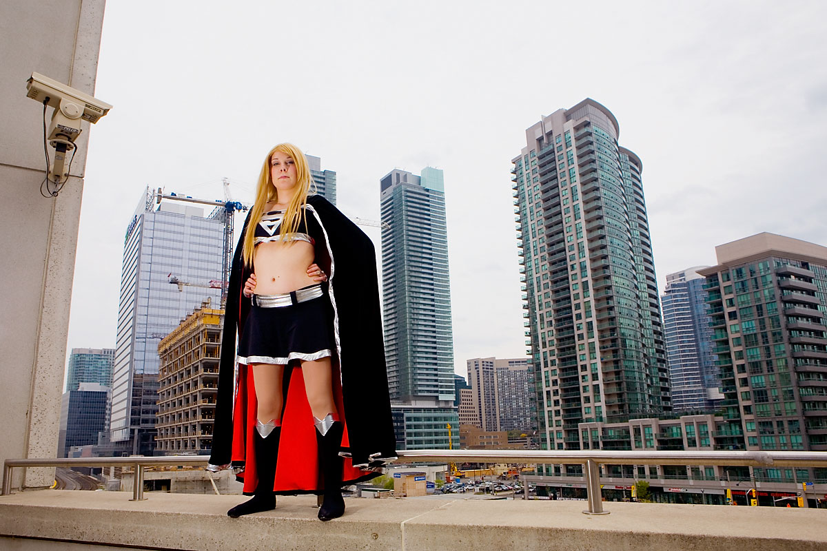 Part 1 of the shoot had us hiding away in an alley. Part 2 put us in the familiar territory of the Metro Toronto Convention Centre, followed by a trek back to her waiting bus, where we ran across a bunch of pro-pot demonstrators out for some rally. Dark Supergirl allowed the ruffians to pass, while taking a few more photos, before calling it a day... |